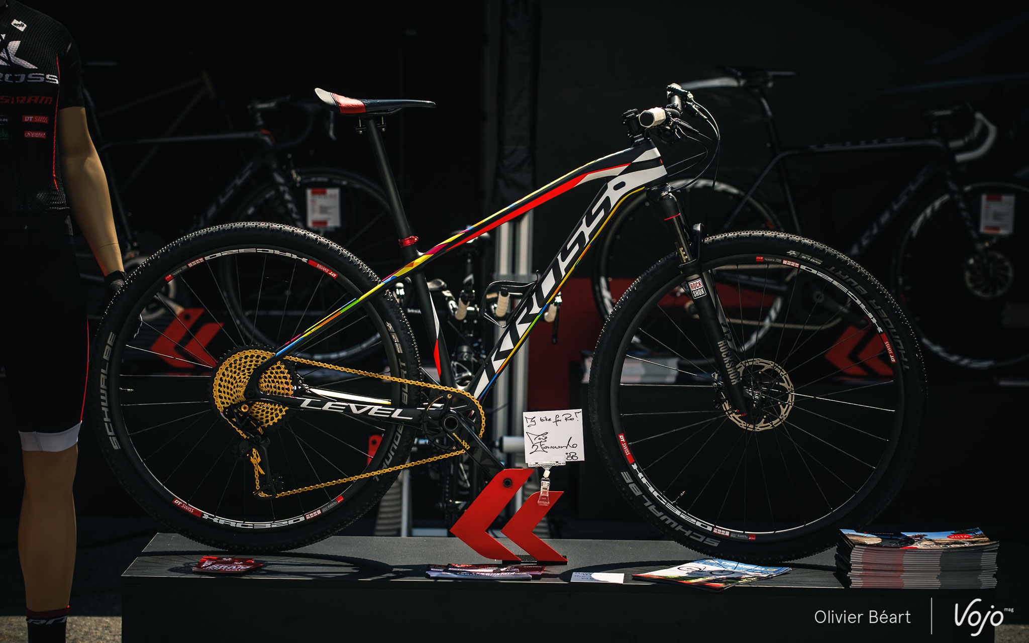 Jolanda Neff, Maja Włoszczowska, Fabian Giger et Bartek Wawak rouleront tous les quatre sur le dernier semi-rigide de la marque, présenté peu avant les championnats du Monde 2016 à Nove Mesto, le Kross Level B+, annoncé à 7,9kg sur la balance en version team.