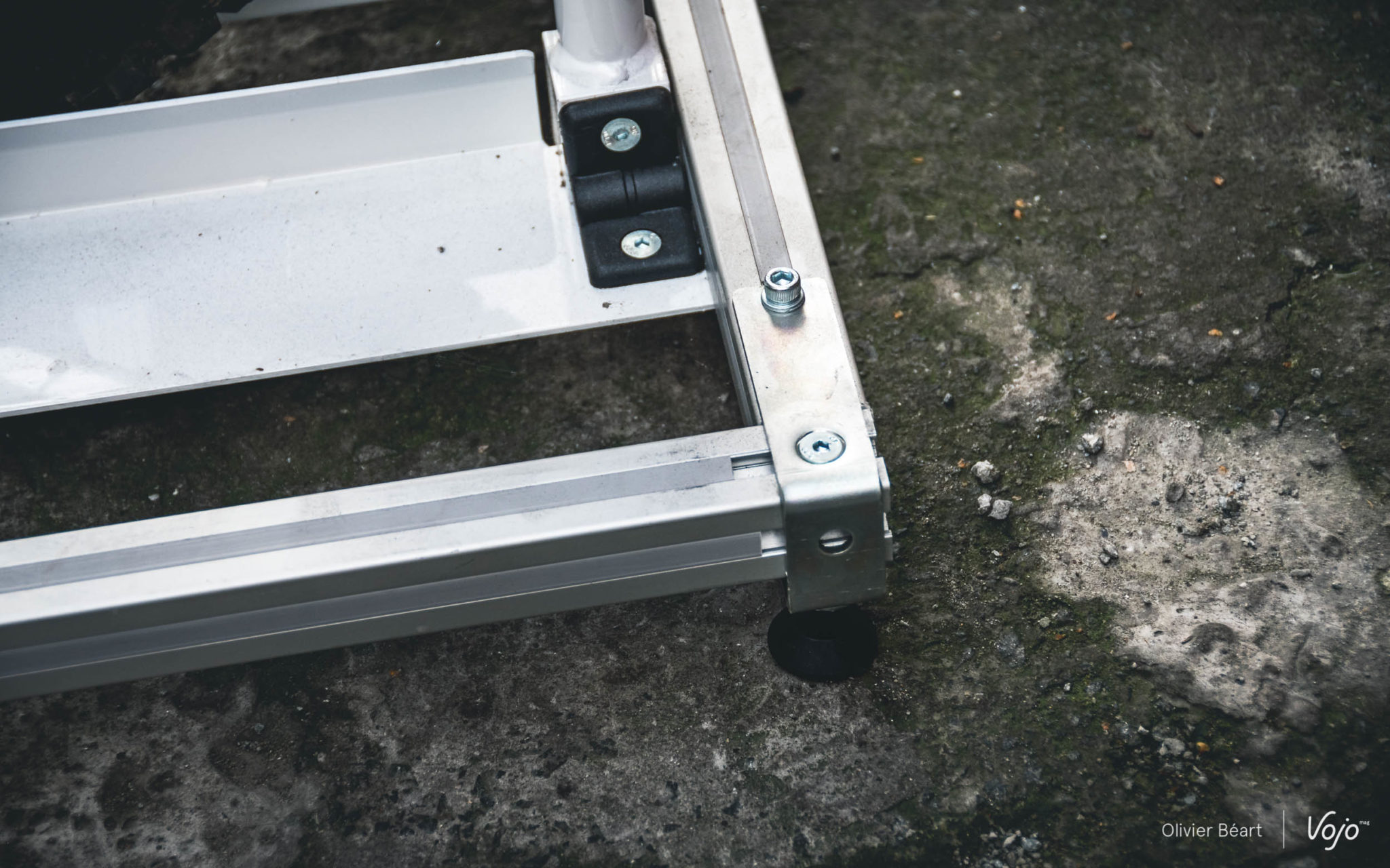 Le deuxième pied que nous vous présentons est aussi fabriqué en Belgique, mais il s’adresse plus aux magasins de vélos et aux professionnels, afin de les aider lors des phases de réglage des vélos de leurs clients.