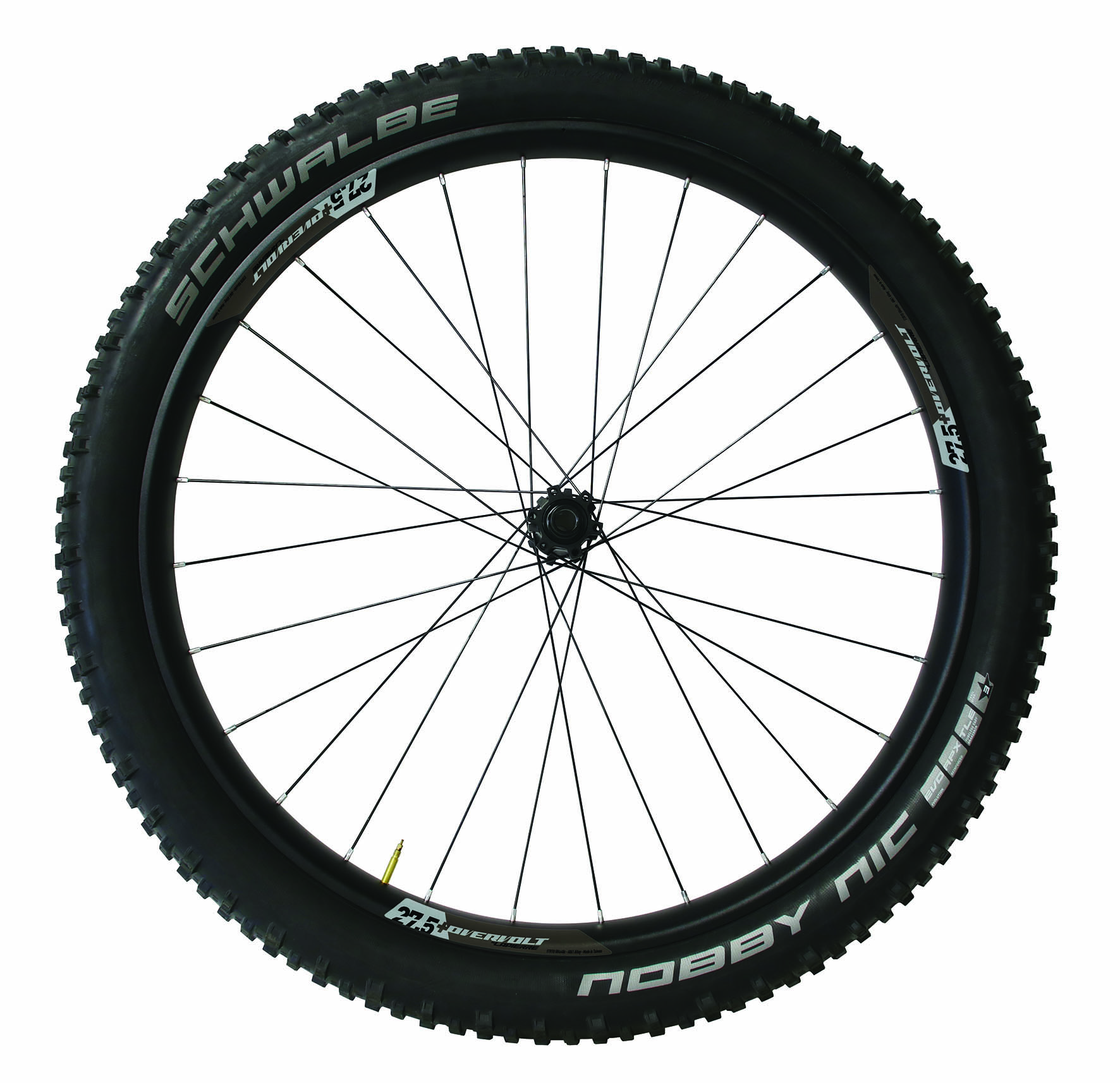 Et c’est là que Lapierre va, à notre avis, vraiment dans le bon sens en ne cherchant pas vraiment à « faire de la marge » sur cette option, mais plutôt en jouant la carte du « 2 vélos en 1 » en proposant en complément ces roues à jantes alu de 40mm de large avec 28 rayons acier (droit à l’avant, coudés derrière), des moyeux au standard Boost, des pneus Nobby Nic en 2.8 et un kit tubeless ; le tout pour un poids de 2034g (sans pneus).