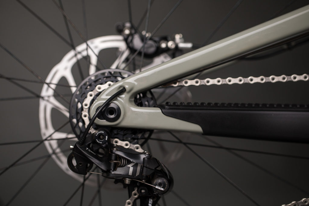 On retrouve l’architecture du vélo qui s’alignait jusqu’ici à l’état de prototype sur les coupes du Monde et, pour sa sortie commerciale, deux versions sont possibles : 29 ou 27,5 pouces. Pour la marque, le choix d’une taille de roue dépendra des préférences et du gabarit du pilote, mais d’une version à l’autre, il n’y a pas que la taille qui change. Les deux cadres sont optimisés pour chaque format de roue et ont été testés indépendamment. Ce V10 de 215mm de débattement se distinguera notamment par ses bases réglables qui permettent d’ajuster l’équilibre du vélo aux préférences du pilote.