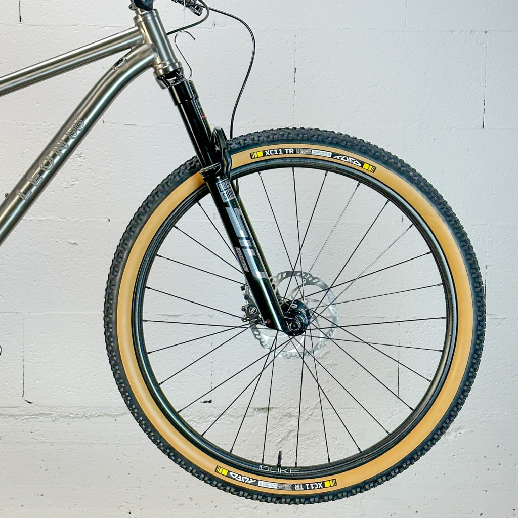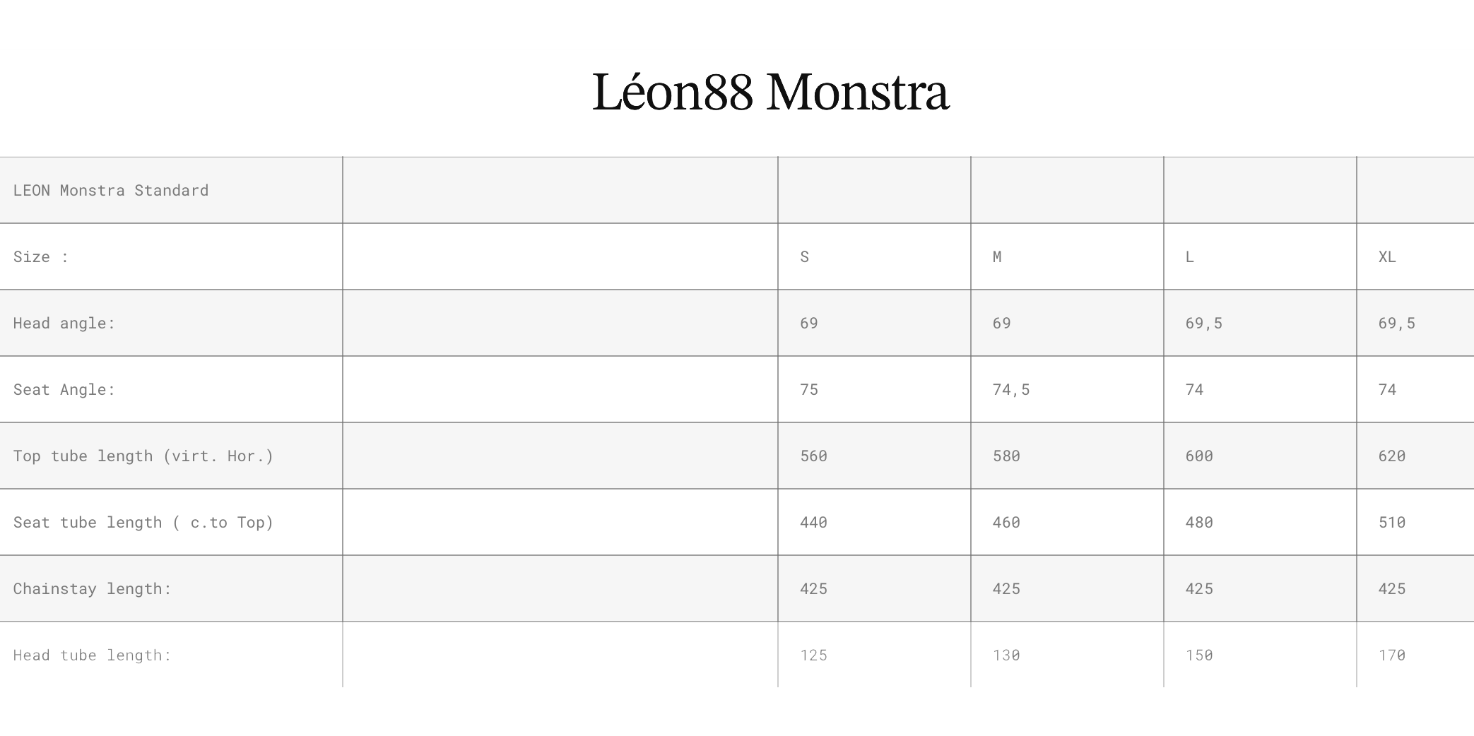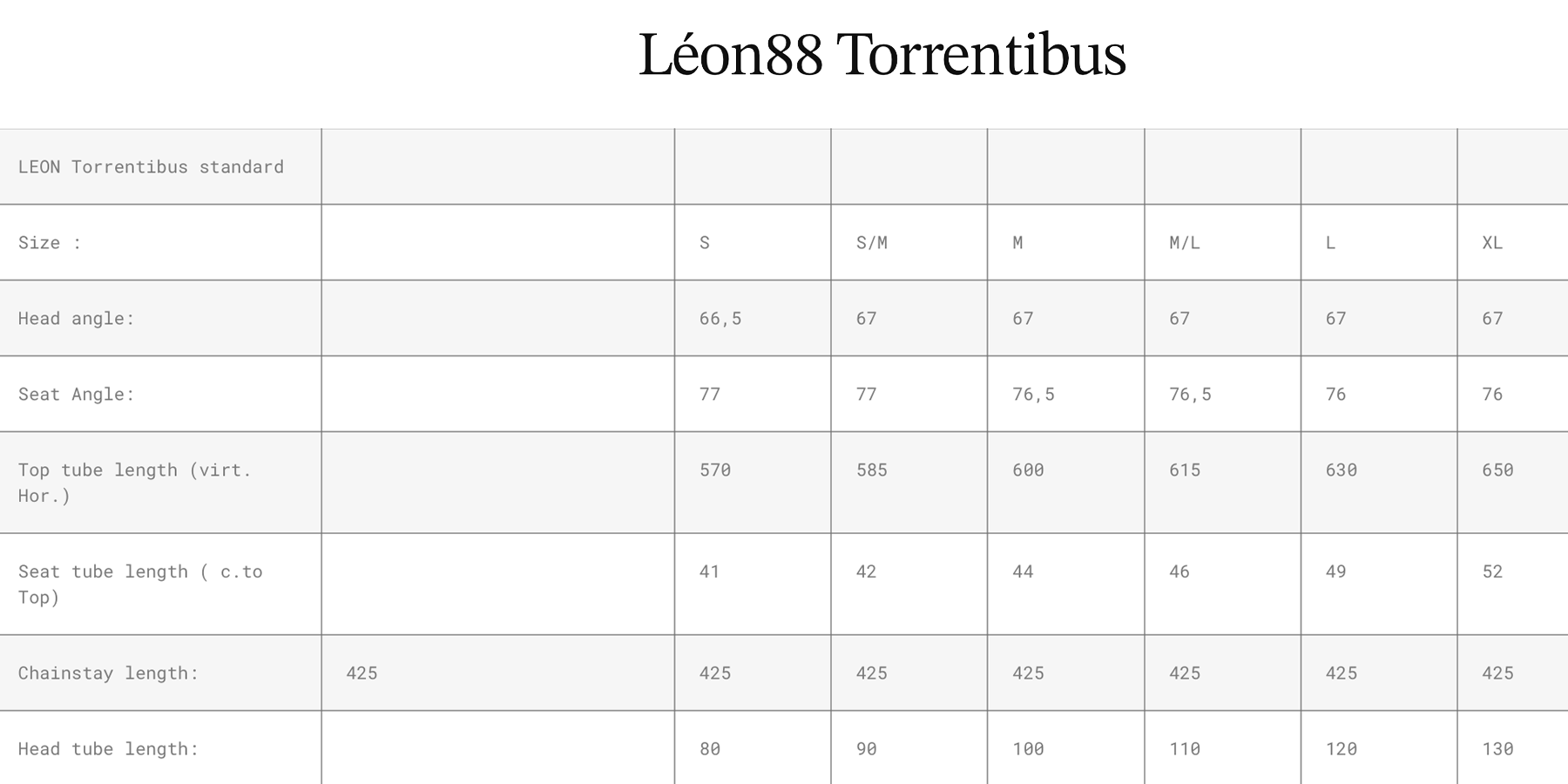 Comme on le précisait en introduction, Léon est caractérisé par ses géométries plutôt radicales. Pour le Torrentibus, cela se traduit par un angle de direction de 67°, un angle de tube de selle de 76,5° et des bases de 425 mm en taille M.