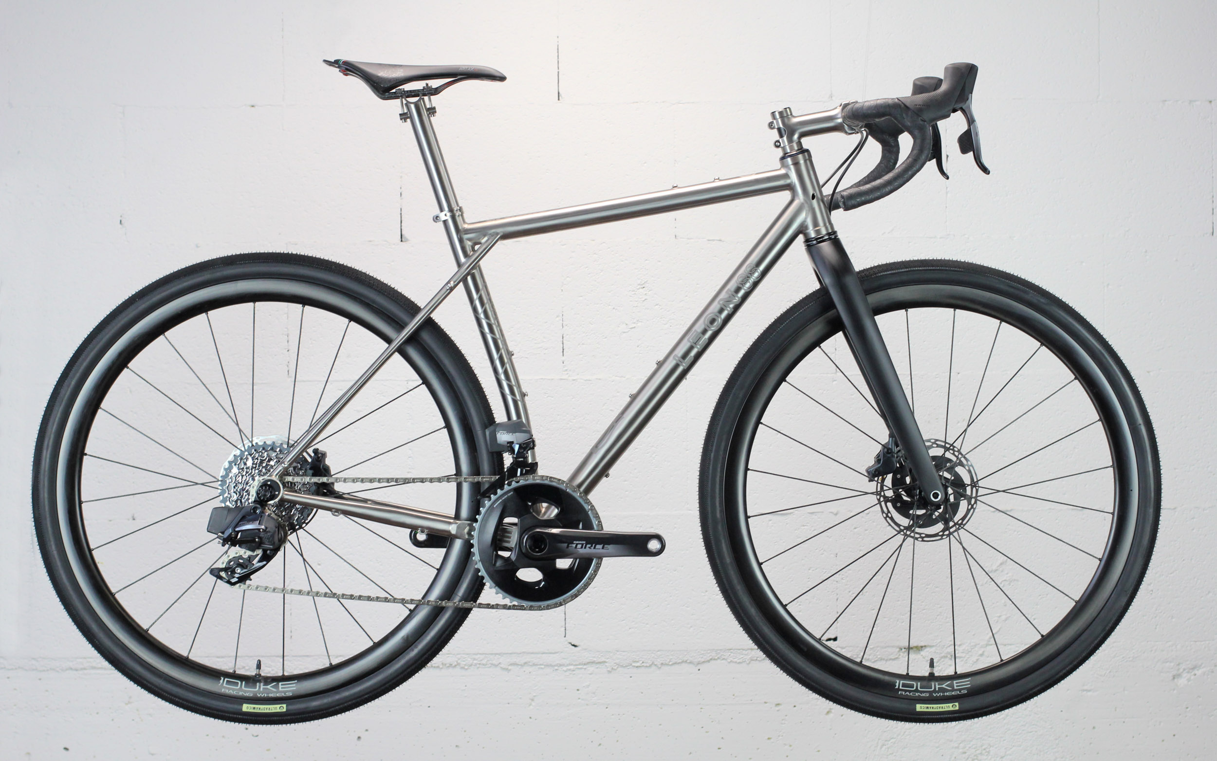 Le mix entre le titane à l’allure très classique combiné à cette originale architecture de jonction des haubans permet au GraALL de se démarquer visuellement. Les finitions sont soignées et les détails du cadre, comme à l’habitude de Léon, apportent la dernière petite touche au look général du modèle.