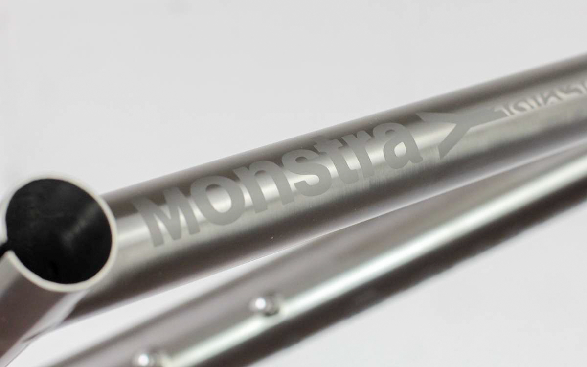 Le cadre est doté d’un passage interne des gaines avec une entrée sur le haut du tube supérieur. Inspiration bikepacking oblige, le Monstra peut accueillir trois porte-bidons et dispose de multiples fixations pour bagagerie notamment au niveau du tube supérieur et de la fourche.