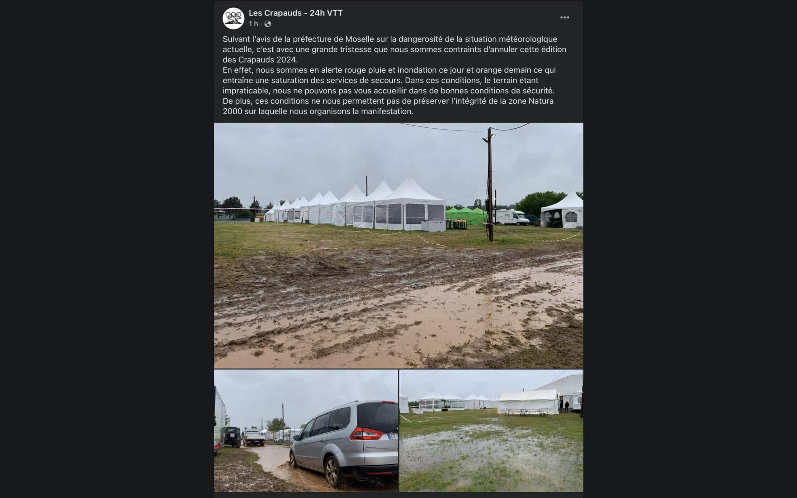 Il y a des nouvelles qu’on préférait ne pas partager, celle-ci en fait partie tant nous nous faisions une joie de retrouver cette épreuve. Suite à la dangerosité de la situation météorologique, les organisateurs des 24h des Crapauds ont été contraints d’annuler cette édition 2024, la veille de sa tenue. Explication :