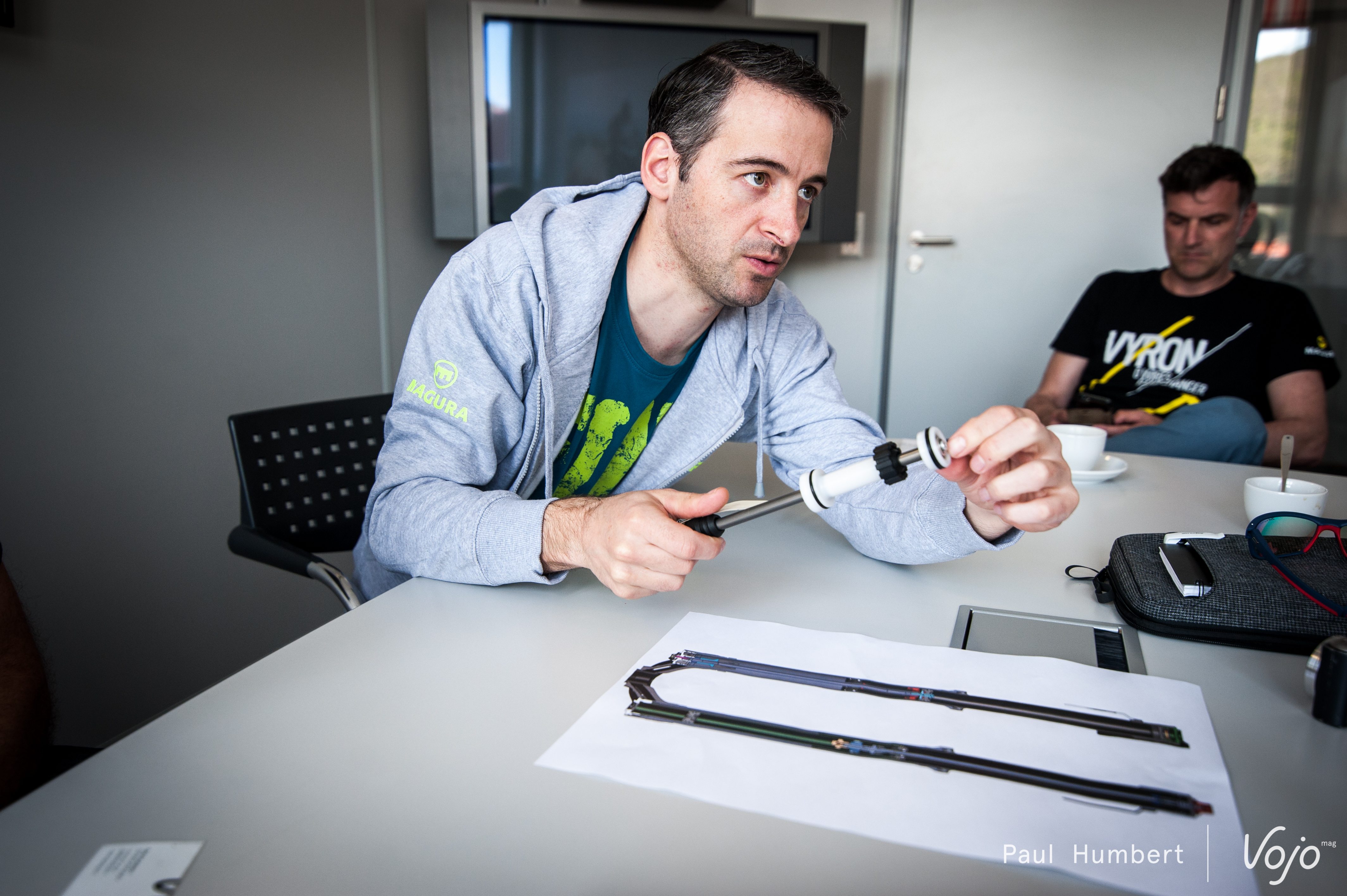 Plusieurs settings sont prévus et la fourche est annoncée à 2,1 kg. Nous venons d’en apercevoir le premier modèle mais la commercialisation définitive de la Boltron est annoncée pour 2017-2018. Magura s’est associé à WP qui a l’habitude de développer des fourches inversées pour la moto, le spécialiste de la suspension dispose ainsi de tous les appareils de mesure. Après sa conception en Europe, cette fourche est produite à Taïwan.