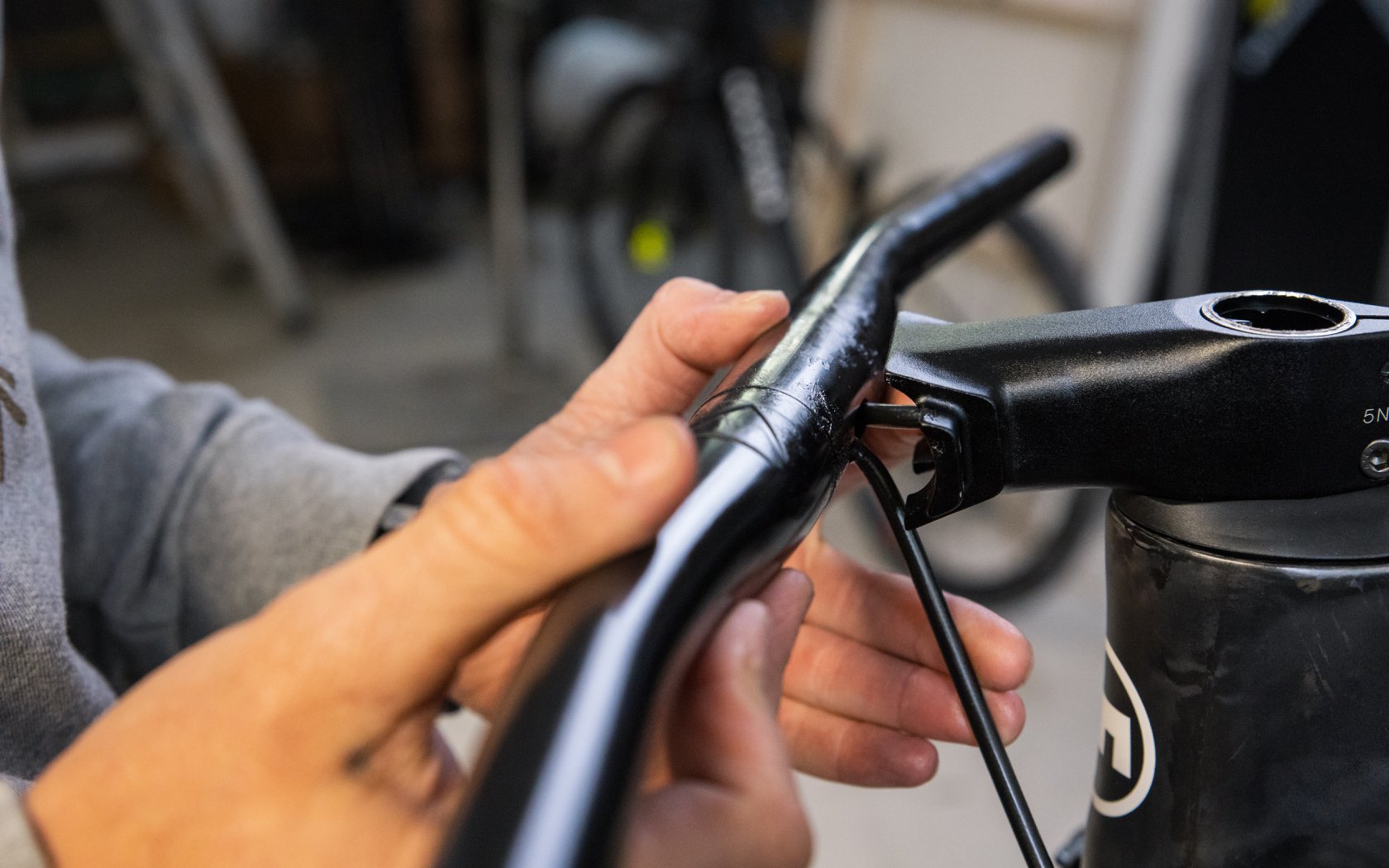 Au lieu de rentrer dans le pivot de fourche, elle passe dans le jeu de direction et contourne le pivot de fourche pour filer dans le tube diagonal, à l’image de ce qui se fait de plus en plus souvent sur les vélos de route.
