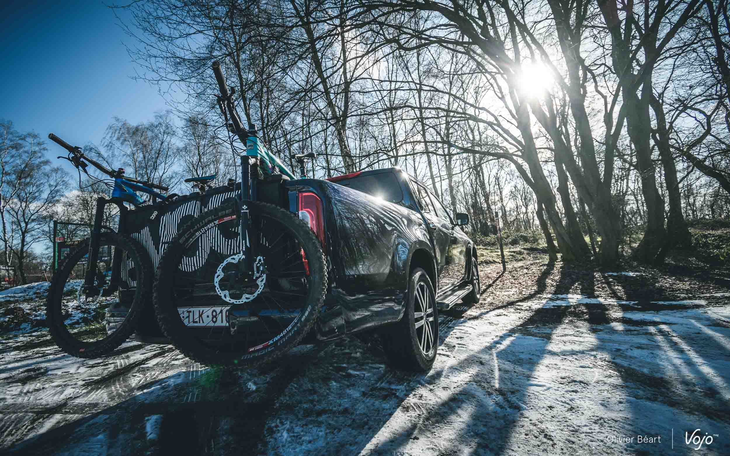 Si la gamme Mercedes-Benz Vans compte plusieurs modèles adaptés au transport de vélos, comme le petit Citan et le Vito plus spacieux, c’est avec le pick-up Mercedes Classe X que commencent nos aventures communes. Berline à l’intérieur et baroudeur à l’extérieur, il nous a déjà permis de transporter jusqu’à 4 vélos dans sa benne ainsi qu’un bon paquet de matos (photo, pied d’atelier, etc) pour des tests sur le terrain quelques jours à peine après que nous en ayons pris possession.