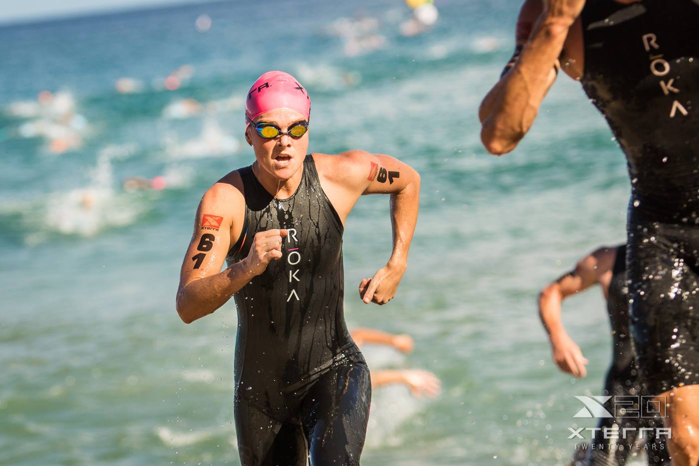 Chez les hommes, c’est Courtney Atkinson qui sort le premier de l’eau (il terminera finalement 5e), mais c’est la performance de la meilleure féminine qu’on retient, Flora Duffy (ci-dessus, dossard 61) épate : elle signe le 5e temps de la natation, toutes catégories confondues ! De son côté, le futur champion du Monde Josiah Middaugh réalise un chrono moyen sur cette première partie de l’épreuve, comme le tenant du titre, l’Espagnol Ruben Ruzafa, ancien vttiste professionnel (il a notamment été coéquipier de Julien Absalon chez Orbea). Mais ils vont tous deux se rattraper sur les disciplines suivantes, où il est possible de créer des écarts plus importants.