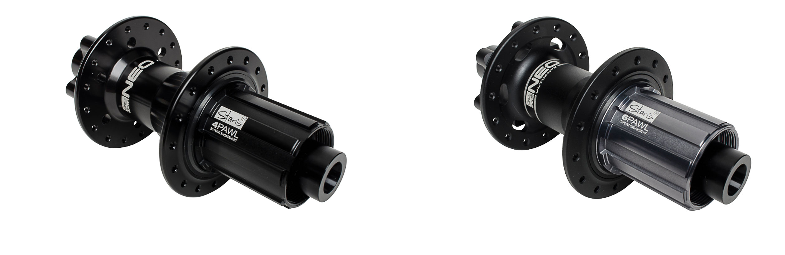 La différence entre le Neo (à gauche) et le Neo Ultimate se fait au niveau du mécanisme de roue-libre, qui est à 4 cliquets sur le Neo et à 6 cliquets sur le Neo Ultimate, ce qui assure un temps mort à l’enclenchement de 10° sur le premier et seulement 5° sur le second avec respectivement 36 et 72 points d’engagement. Actuellement, ils n’équipent que les roues Bravo, mais on imagine qu’ils se retrouveront très rapidement sur d’autres modèles, comme les Valor.