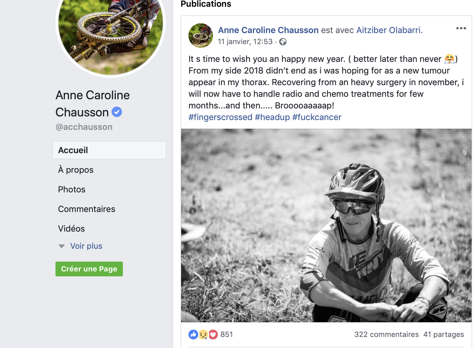 Ça n’est pas forcément évident de trouver les mots, parce que pour nous, ça n’a rien d’une actualité froide. Elle concerne quelqu’un qui nous touche, que l’on apprécie pour sa personne autant que l’on respecte son immense palmarès. Alors en ce début d’année, toutes nos pensées vont vers Anne-Caroline Chausson.