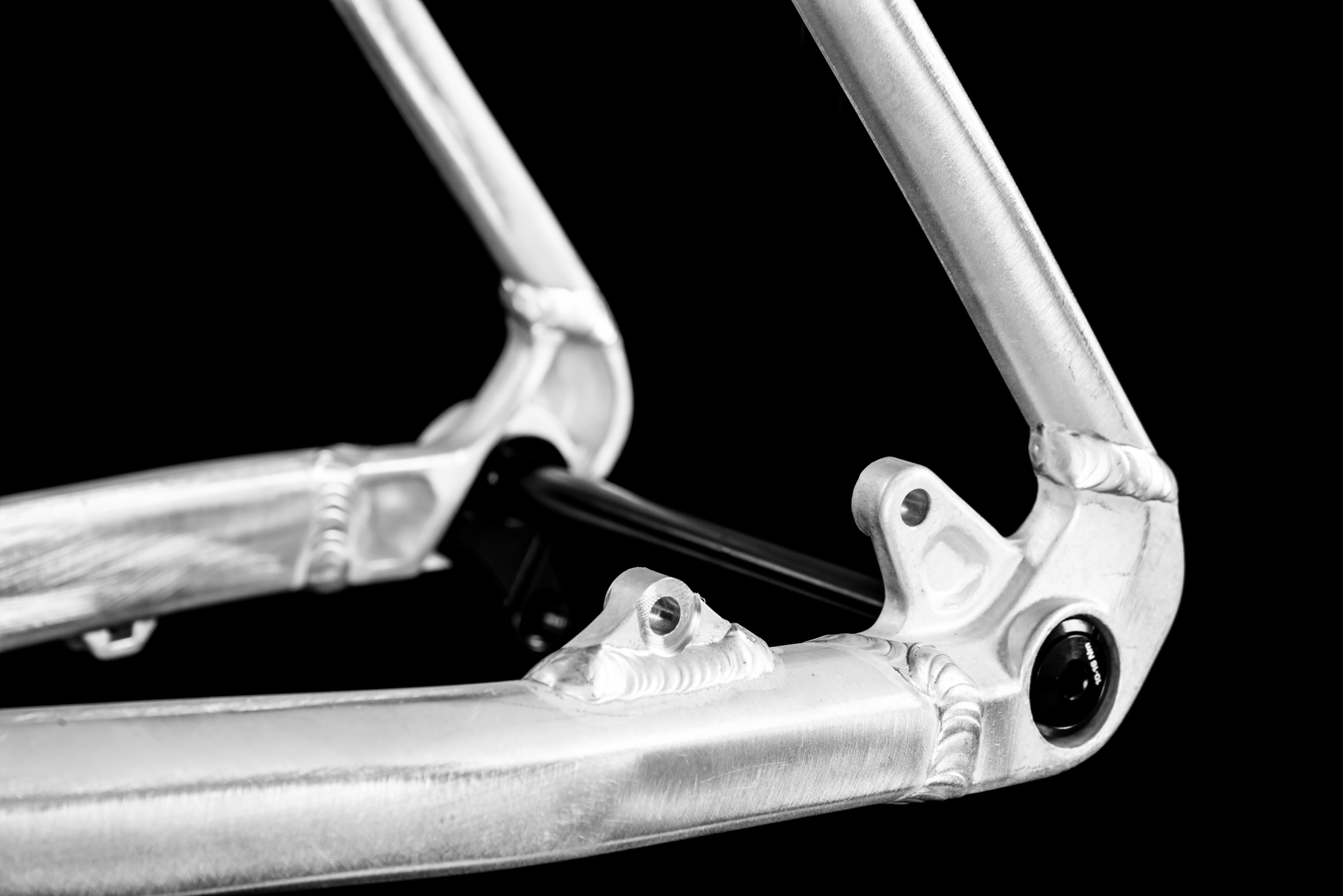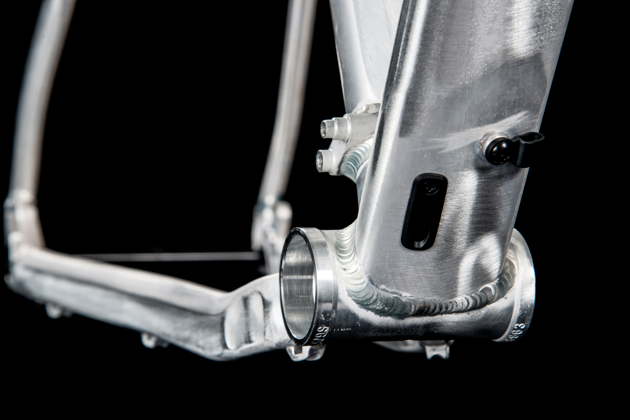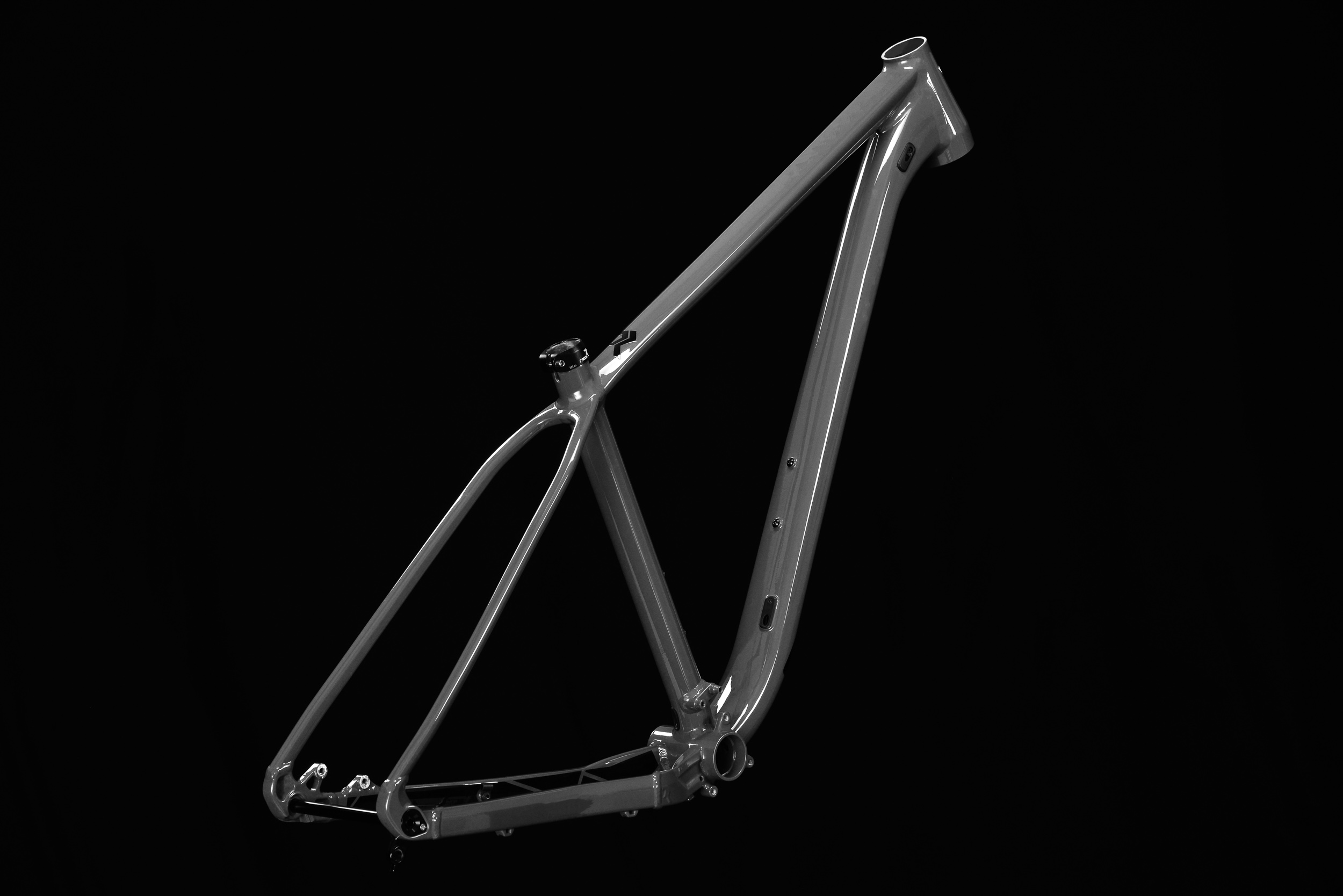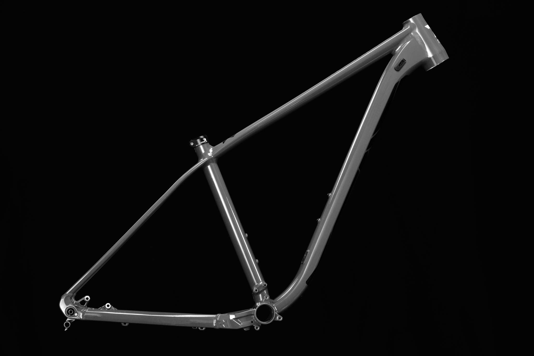 Même s’il reprend la même géométrie que le carbone, il se veut un peu plus polyvalent et accessible. Le triangle arrière a été travaillé pour offrir un peu de confort et il est prévu pour un montage mono ou double plateau avec dérailleur avant. Il offre aussi la particularité d’être en 27,5 pour les tailles 16 et 18″, puis en 29″ pour les tailles 18, 20 et 22″.