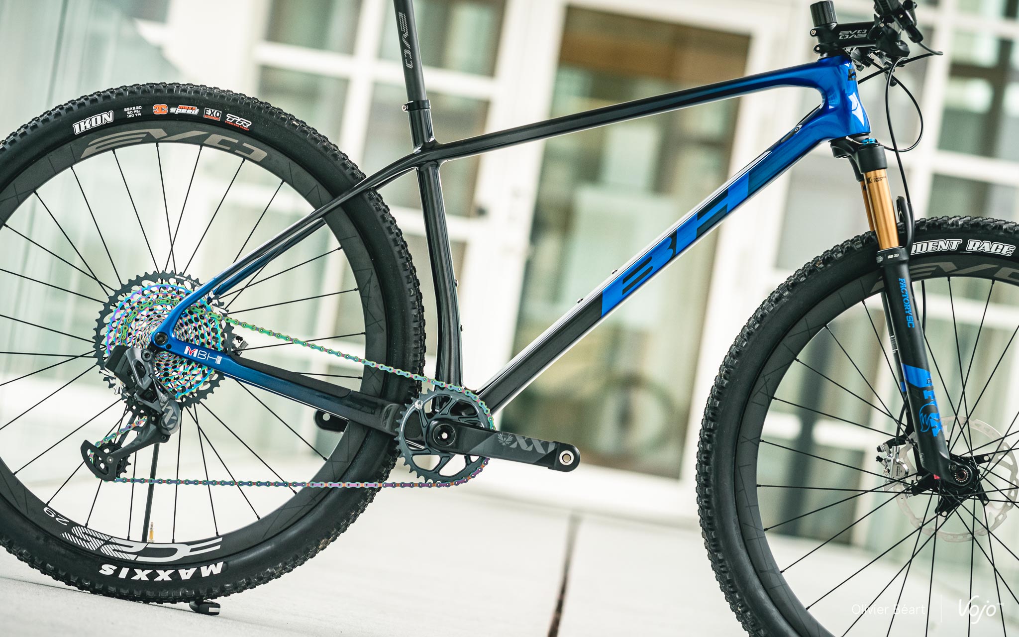 Pour ce qui est du poids, BH annonce 840 g en taille M, à vérifier sur notre balance bien sûr car ce genre d’info est toujours à prendre avec des pincettes. Ce n’est pas loin des 790 g du Specialized Epic HT et on se situe dans les mêmes valeurs que Scott avec son mythique Scale. C’est aussi un bon 150 g de moins que son prédécesseur qui ne passait pas vraiment sous la barre du kilo. A noter aussi que depuis la publication de cet article, nous avons eu l’occasion de peser le cadre pour connaître son poids réel. Plus d’infos ici.