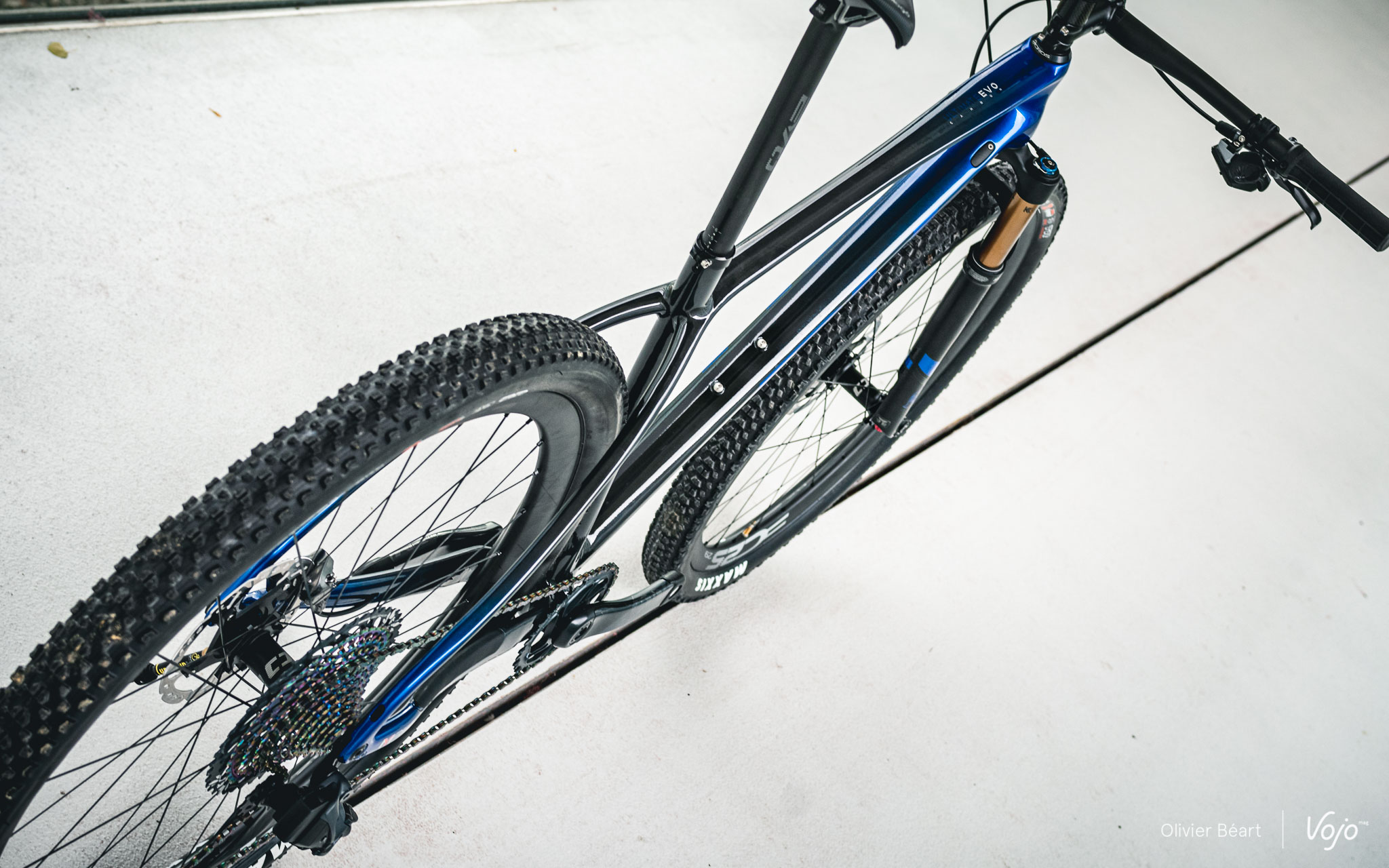 Après, il y a différentes façons de concevoir ces fameux hardtails. Et chez BH, on a bien sûr voulu viser un poids plume, mais aussi un vrai confort sur le triangle arrière et une géométrie à la pointe des tendances actuelles.
