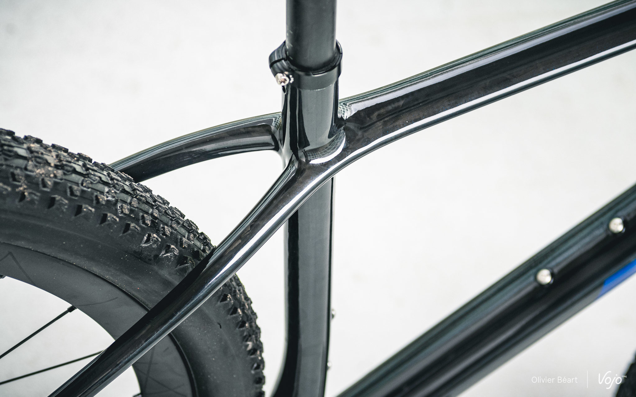 Il en va ainsi au niveau des haubans et du tube de selle qui ont vu leur layup de carbone travaillé dans l’optique d’une déformation contrôlée afin de bien dissiper les vibrations.