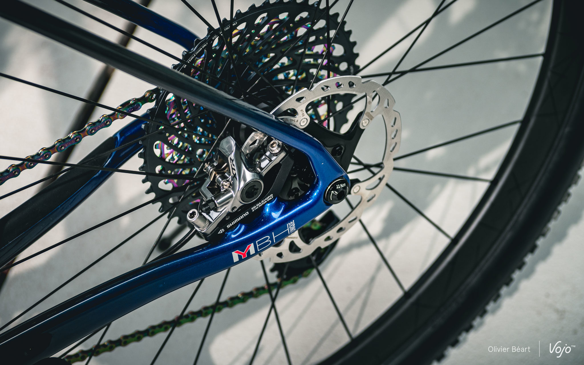 On note aussi que BH a retenu une fixation de type FlatMount pour le frein arrière. Il nécessite un adaptateur, mais il permet surtout de ne pas mettre de filetages dans le cadre et de faire des trous de plus petite taille, permettant de moins renforcer cette zone habituellement complexe.