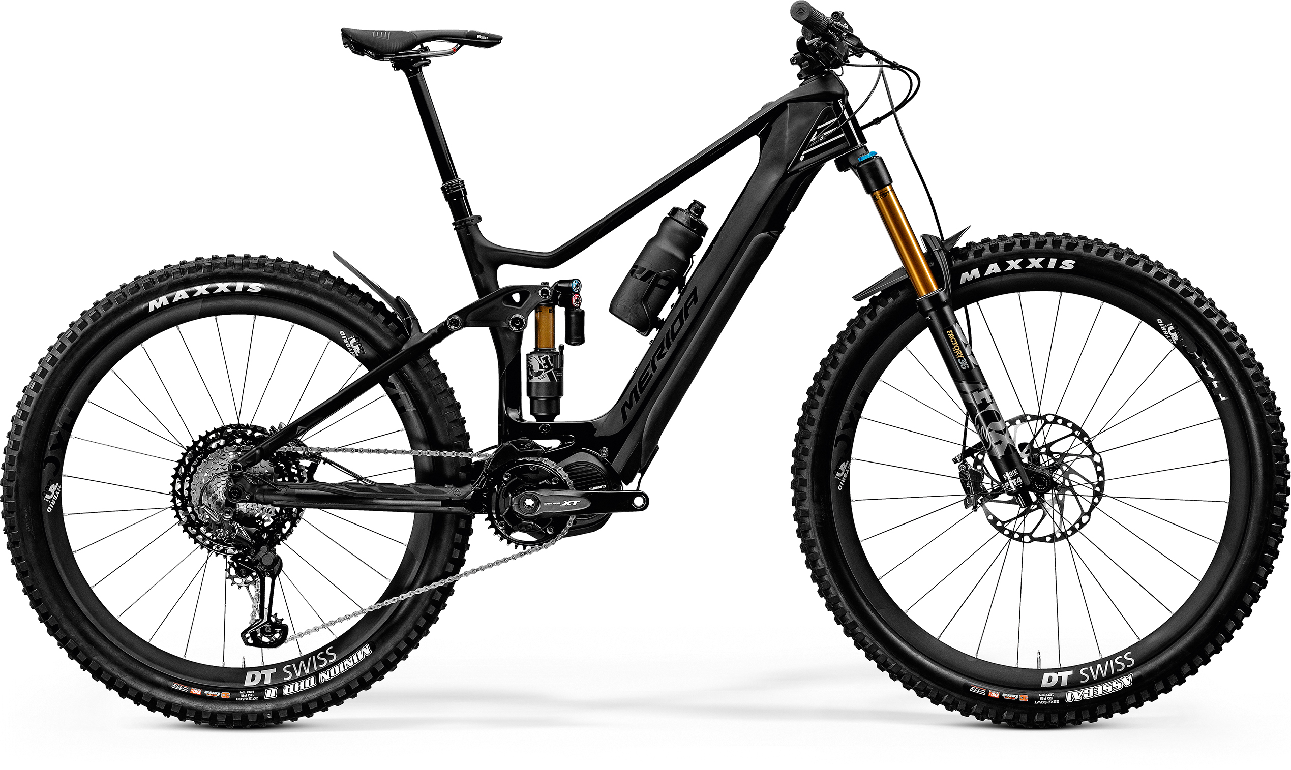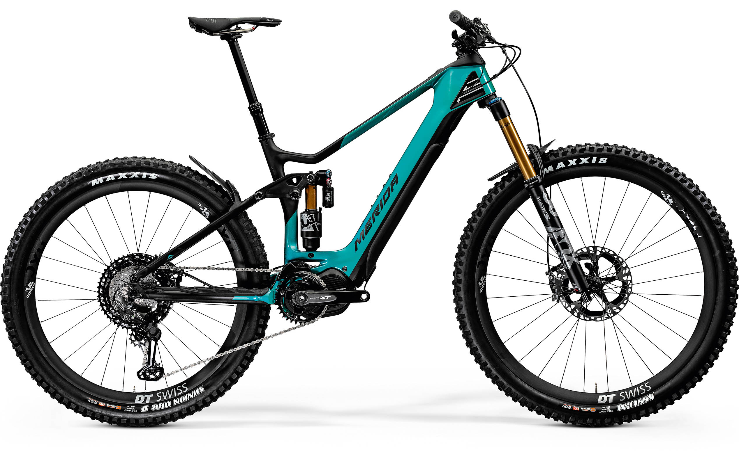 Le partenariat avec Shimano ne s’arrête pas là puisque les transmissions proviennent également du fabricant japonais. Selon les modèles, on retrouve du SLX, du XT ou du XTR (mécanique) avec freins 4 pistons. Les deux modèles haut de gamme sont montés avec des suspensions Fox et des roues DT Swiss tandis que les deux modèles en-dessous utilisent des suspensions Marzocchi (eOne Sixty 8000) ou RockShox (eOne Sixty 5000) et des roues Merida. Le reste des composants (tige de selle, selle, cockpit) sont également des composants maison.