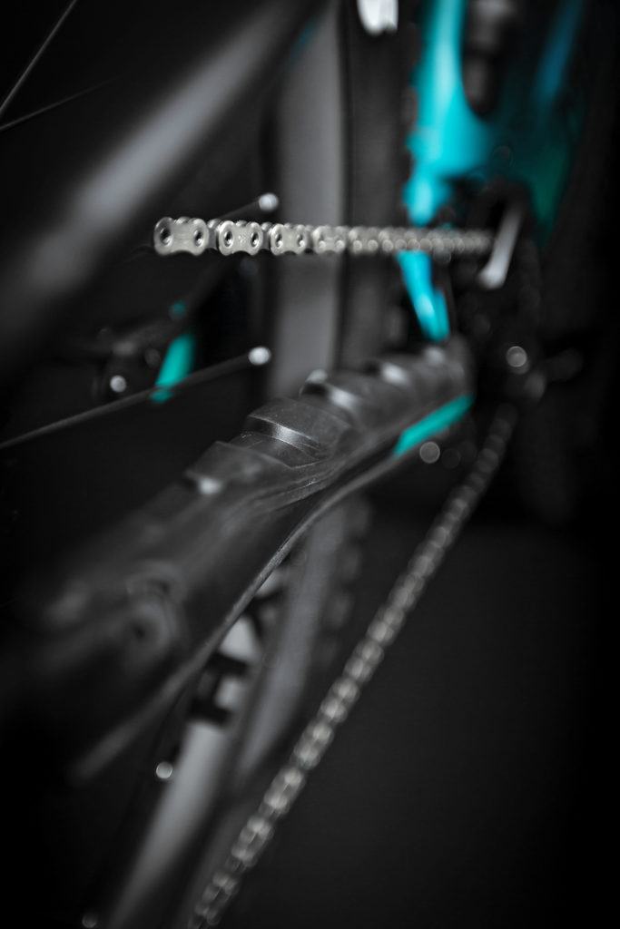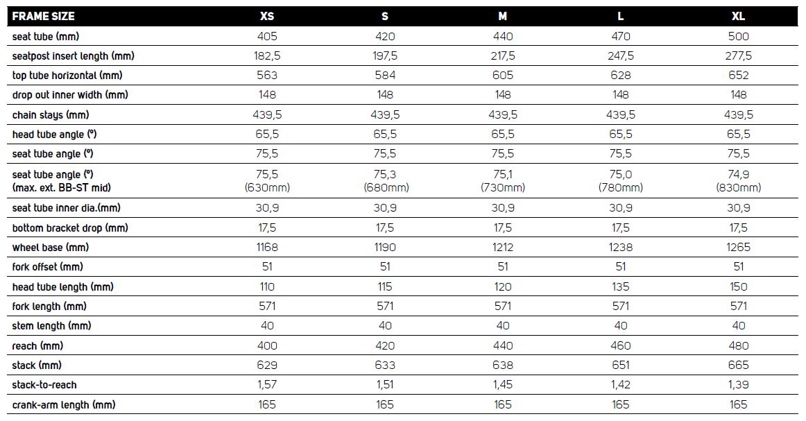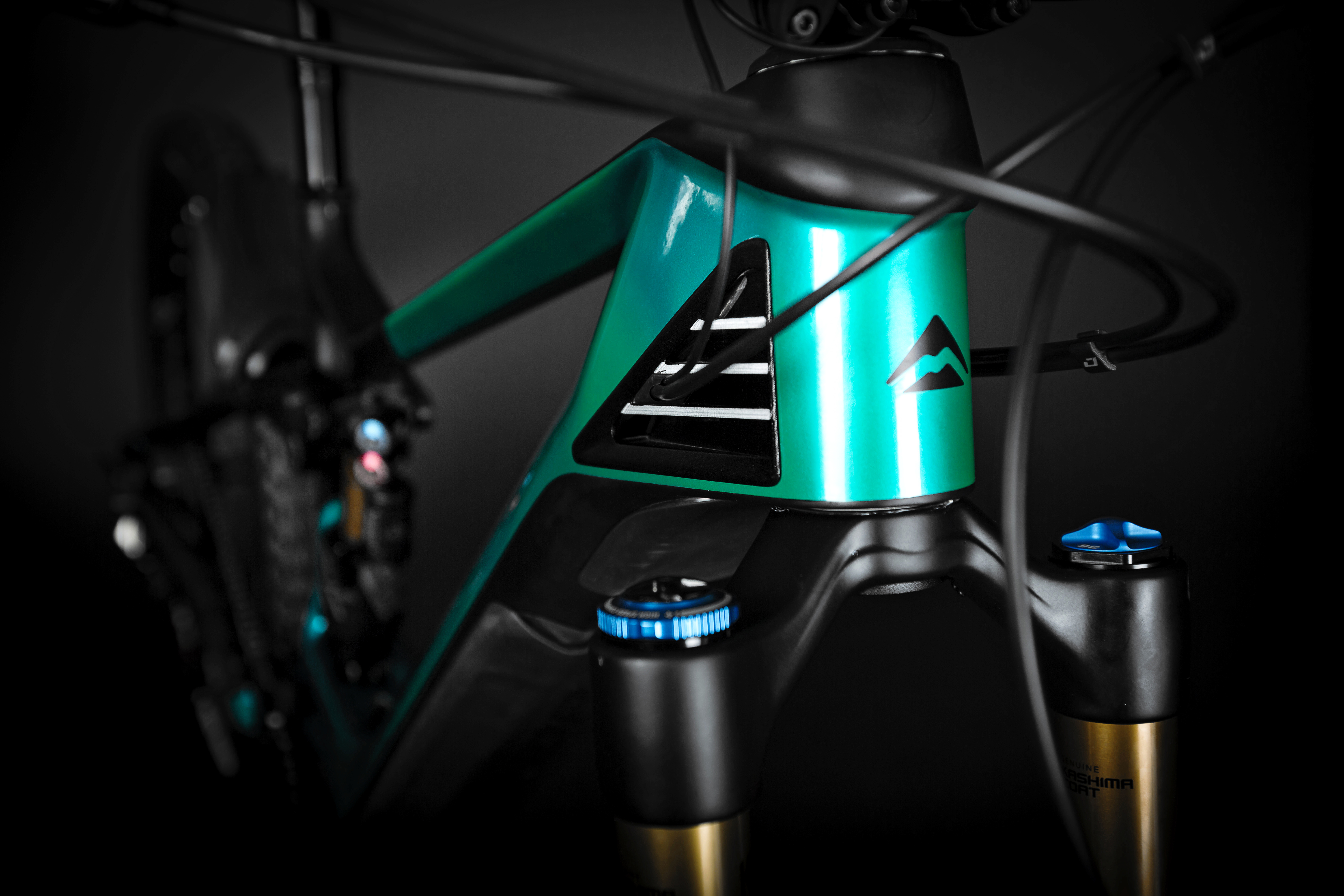 Vis-à-vis de la version précédente, la géométrie s’affirme légèrement mais reste accessible. L’angle de direction se couche d’un degré pour atteinte 65,5° tandis que le tube de selle remonte à 75,5°. L’utilisation d’une roue arrière en 27,5″+ plutôt que du 29″ permet de garder des bases courtes (439,5 mm) pour un VTT AE. Le boîtier de pédalier descend lui aussi quelque peu mais tous les modèles seront équipés avec des manivelles en 165 mm pour réduire le risque de chocs avec des objets au sol. Le reach est à 440 mm en taille M ce qui laisse supposer que la position est assez redressée.