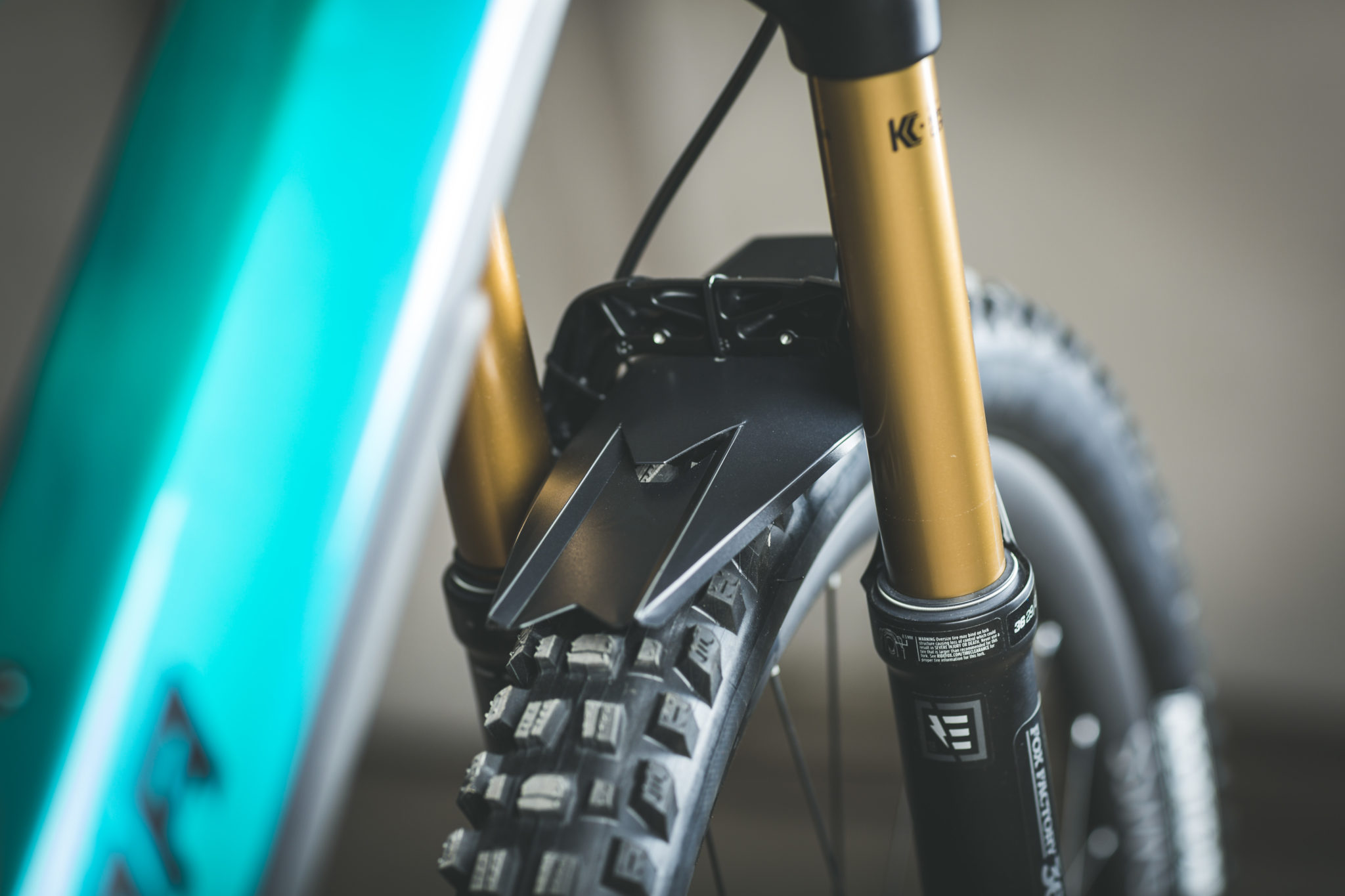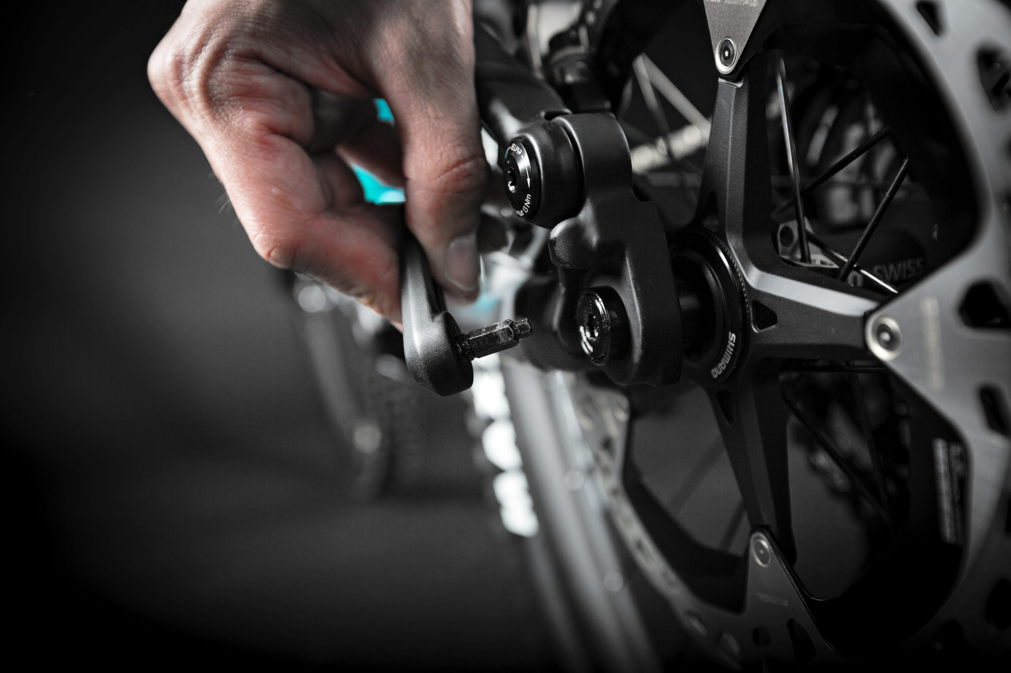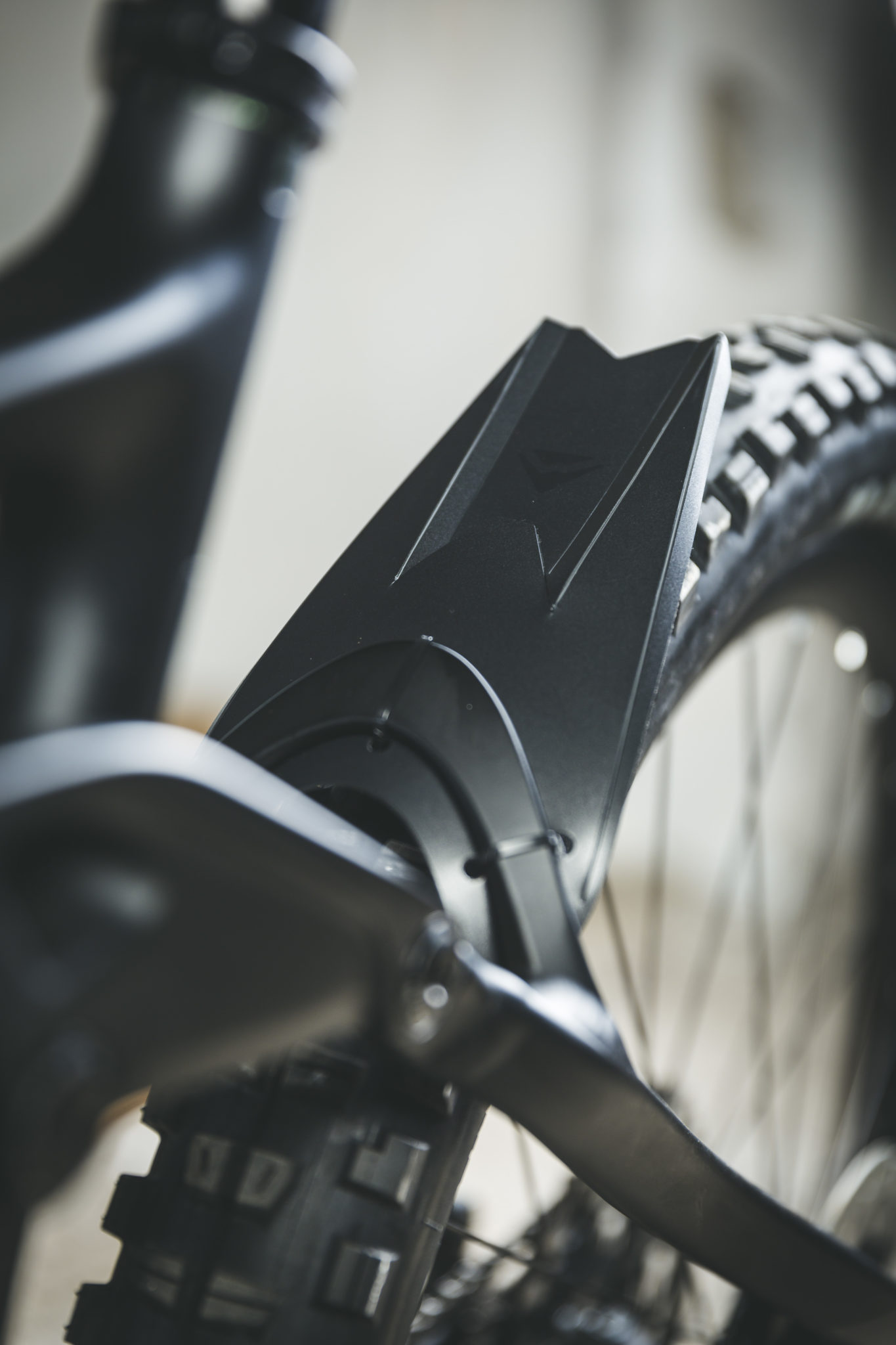 Dans un souci de protection (et pour l’esthétisme), les câbles électriques passent à l’intérieur du cintre de la potence, ils sont donc complètement invisibles. Parmi les autres particularités notables, on remarque les garde-boues intégrés, le protège-base texturé (plus silencieux) et le levier d’axe de roue arrière qui fait également office de clé hexagonale de 4 et 6 mm. La clé de 4 mm permet entre autres de réveiller la batterie après un stockage prolongé ou de démonter la protection pour la sortir du cadre.