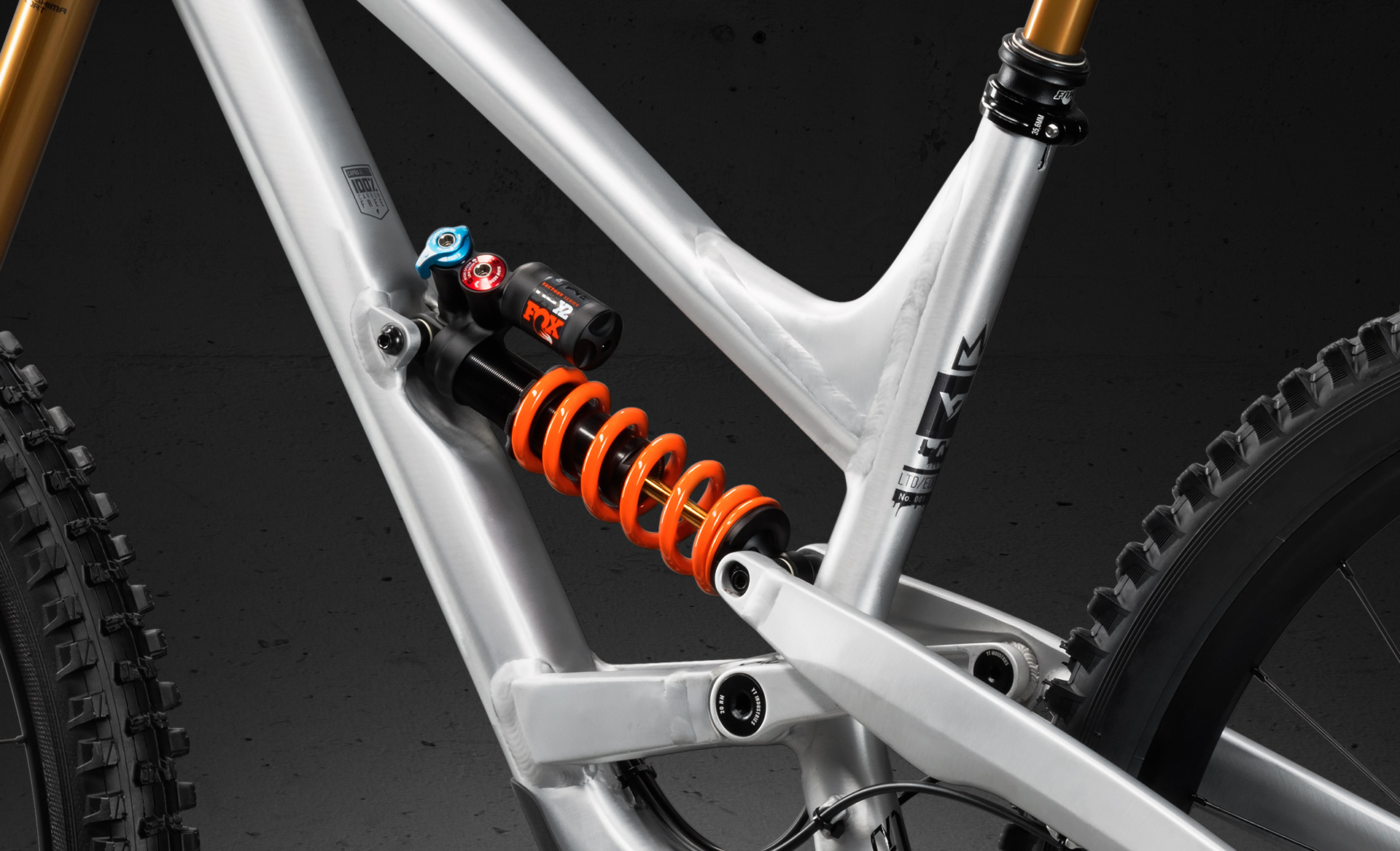 A l’arrière, c’est un Fox DHX2 Factory qui s’occupe de gérer les 160 mm de débattement, à la place des amortisseurs à air des modèles de série.