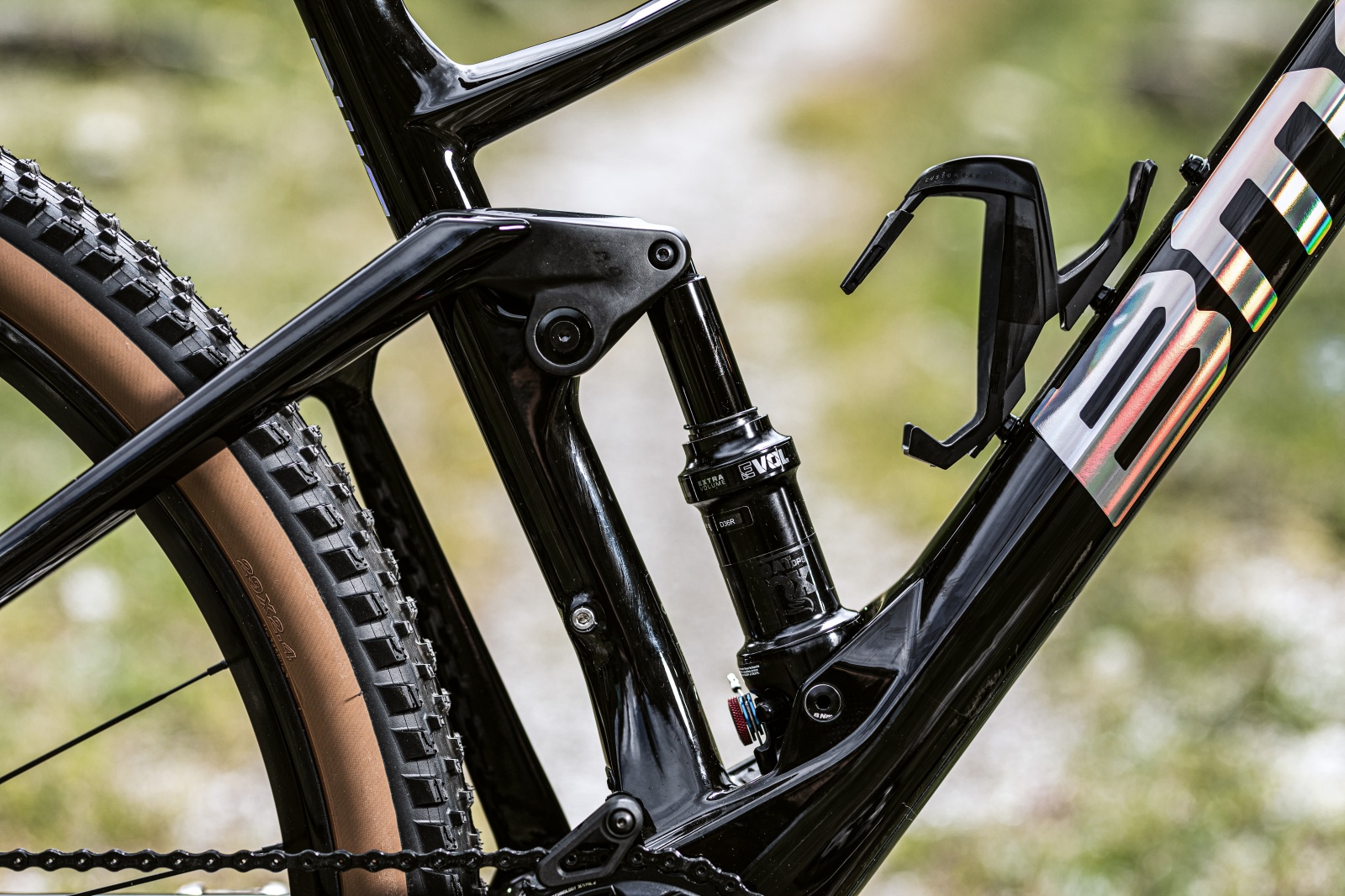 Pas de nouveautés en ce qui concerne le cadre mais tout de même des évolutions sur la géométrie, la faute au débattement plus important qui modifie certains angles et longueurs « virtuelles ». Ainsi, l’angle de tube de selle descend à 74,8° et celui de la direction passe à 66,5°, contre 75,6° et 67,5° sur le Fourstroke non-LT. De son côté, le reach est raccourci de 5 à 9 mm tandis que le boîtier de pédalier remonte de 9 mm.