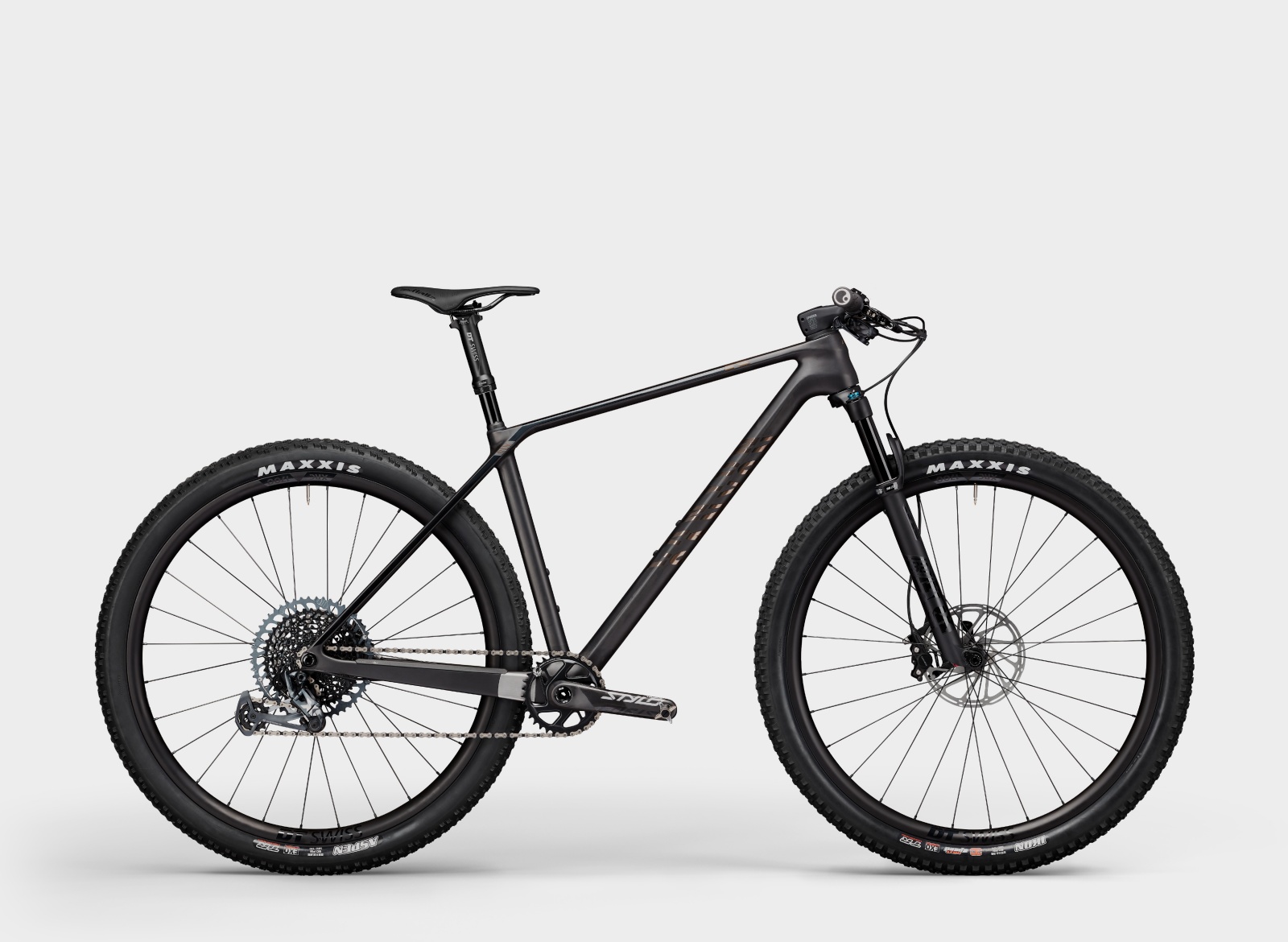 Au-dessus, on retrouve la série Exceed CF SLX avec deux modèles basés sur le cadre M075 à 1 015 g, les CF SLX 8 (3 699 €) et CF SLX 9 (4 699 €). Les deux montages disposent de la tige de selle DT Swiss D232 en aluminium et du cockpit en une pièce Canyon CP0008 XC en 740 x 80 mm.