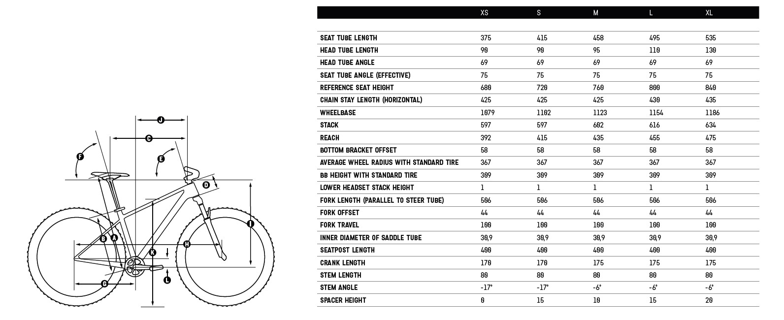 Plus surprenant, l’angle de direction qui affiche 69° (contre 69,5° sur l’ancien Exceed), là où les derniers modèles passent à 68° (Orbea Alma, BH Ultimate) voire 67° (BMC Twostroke). Enfin, on notera que le boitier de pédalier est en moyenne 5 mm plus haut que par le passé et que des potences en 80 mm seront montées sur toutes les tailles, contre 70, 80 ou 90 mm selon la taille sur l’ancienne version.