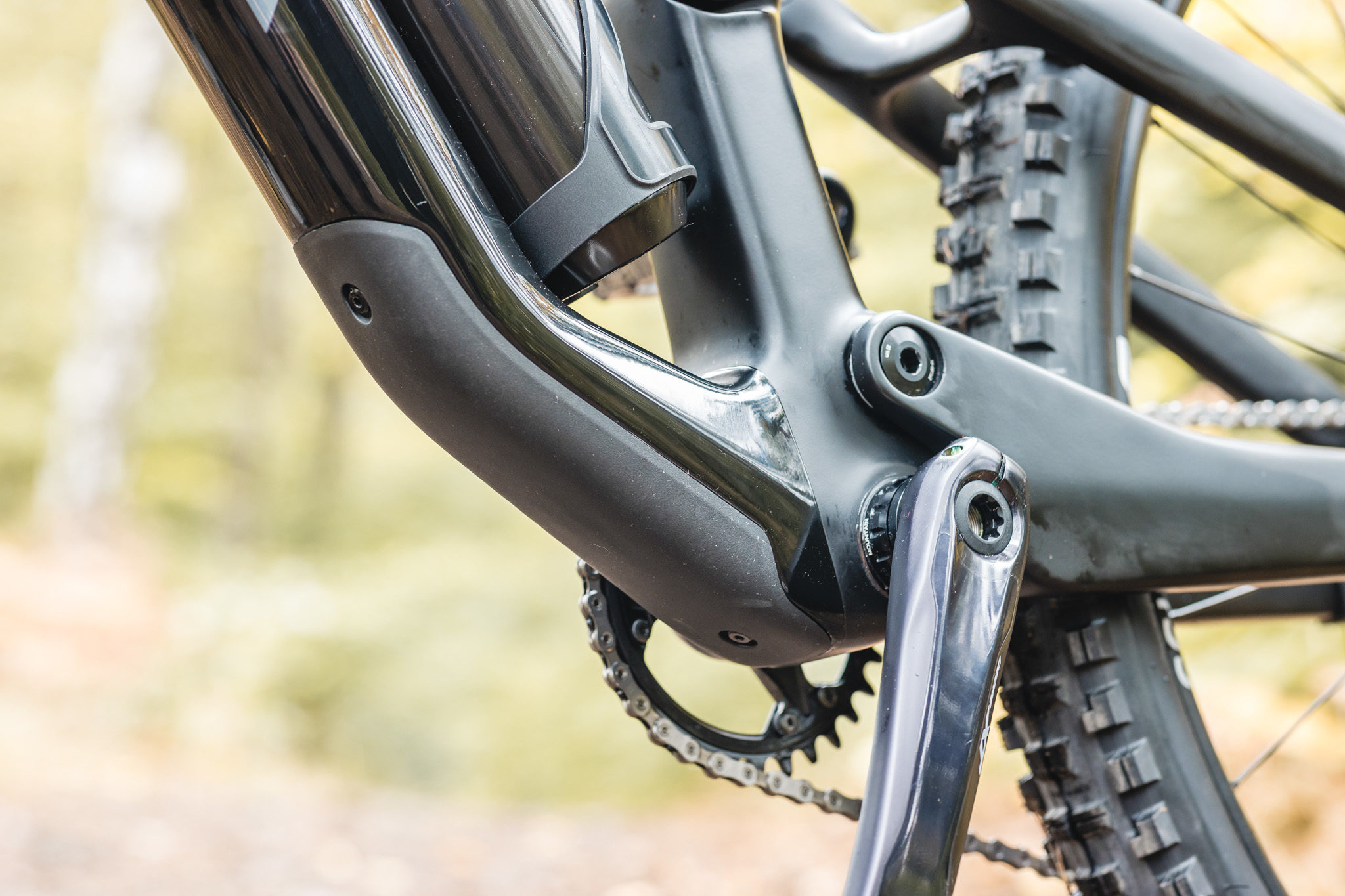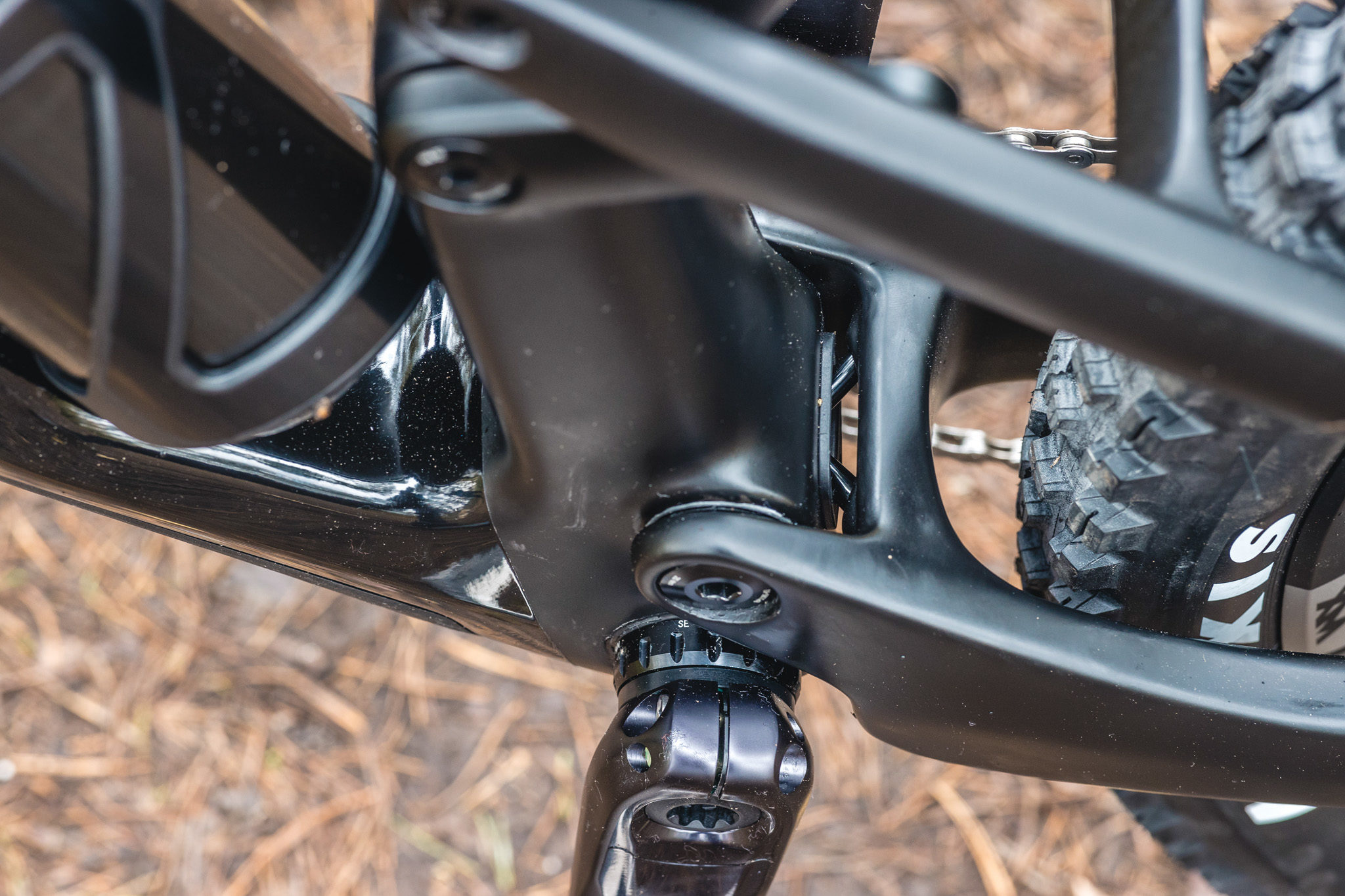 Pas de gros changements côté suspension en revanche, le Spectral reste sur du 150/150 mm (montages RockShox) ou 150/160 mm (montages Fox), avec sa cinématique Triple Phase issue du Sender de descente. Néanmoins, la courbe de ratio évolue tout de même légèrement pour rendre la suspension un peu plus progressive pour plus d’aisance à haute vitesse, tandis que la courbe d’anti-squat est complètement revue pour davantage de soutien au pédalage (environ 100 % au sag sur le pignon de 50 dents contre 87 % sur l’ancien Spectral) et moins de kick-back en fin de course.