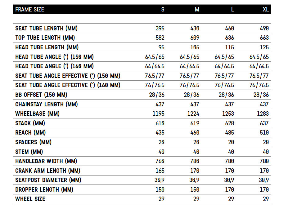 4 versions sont prévues au catalogue, disponibles en 2 ou 3 coloris et pour des prix allant de 3299 € à 5999 €. Tant par leur débattement que par leurs composants, on remarque que les modèles dotés de suspensions RockShox sont plus orientés « trail » que ceux montés en Fox, qui penchent davantage vers l’enduro :