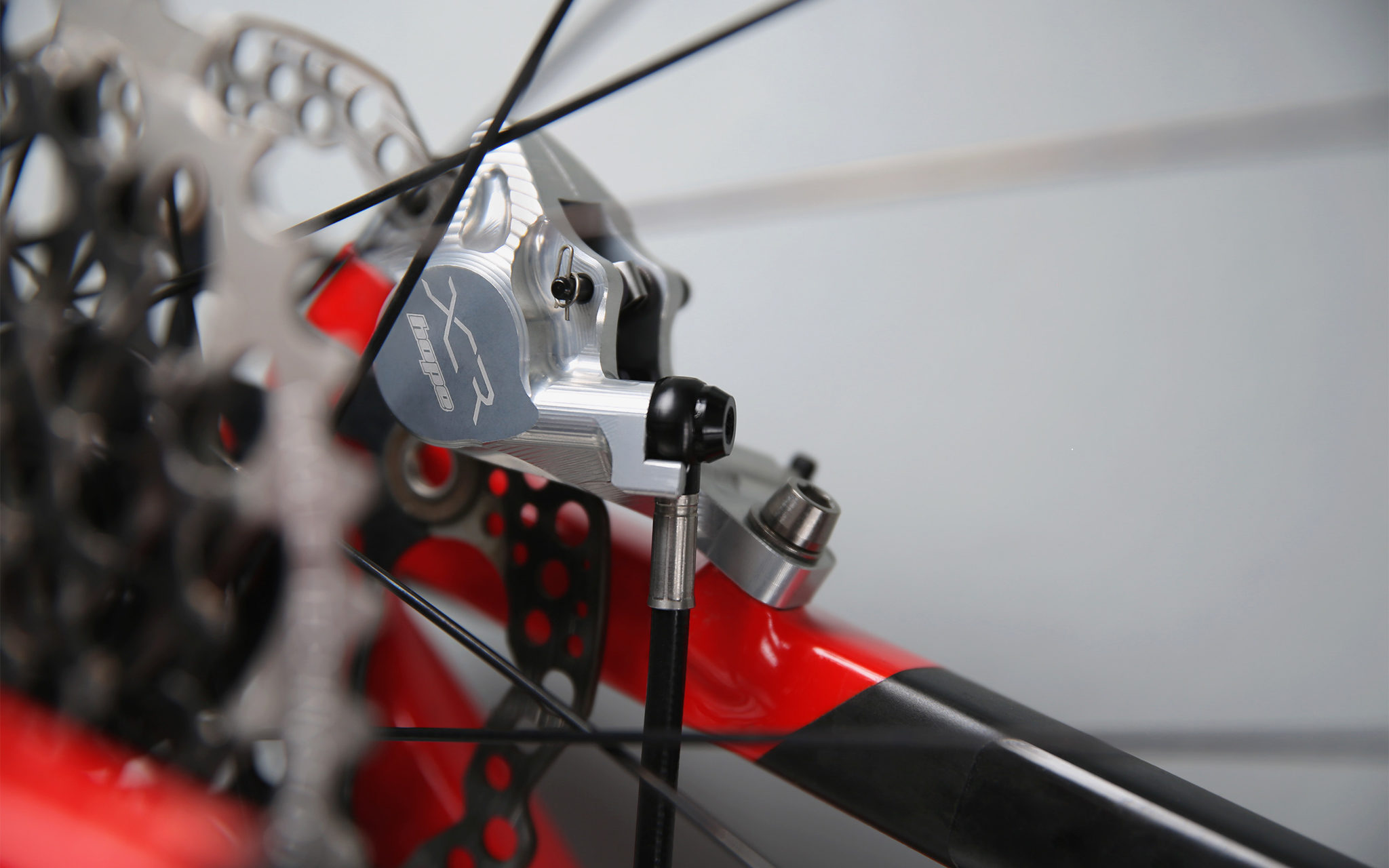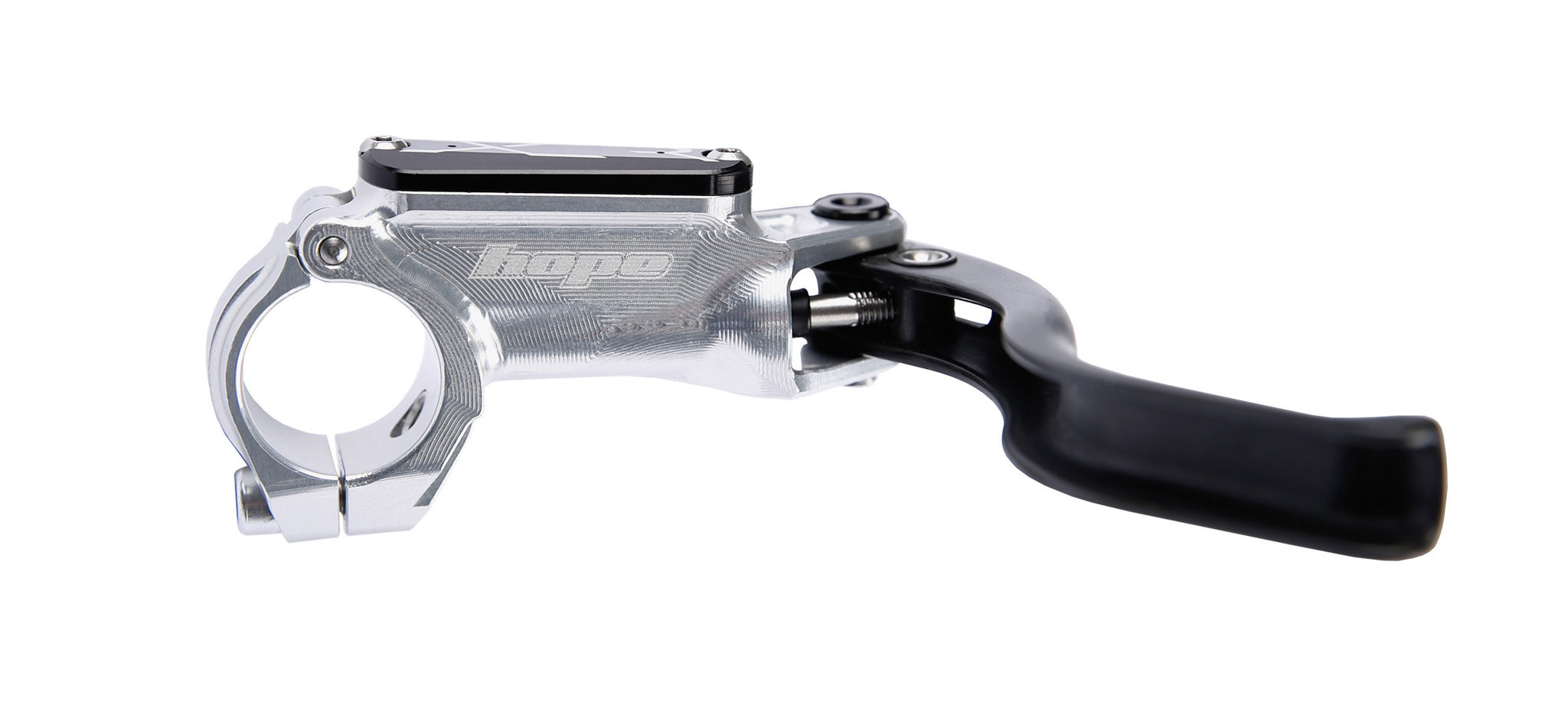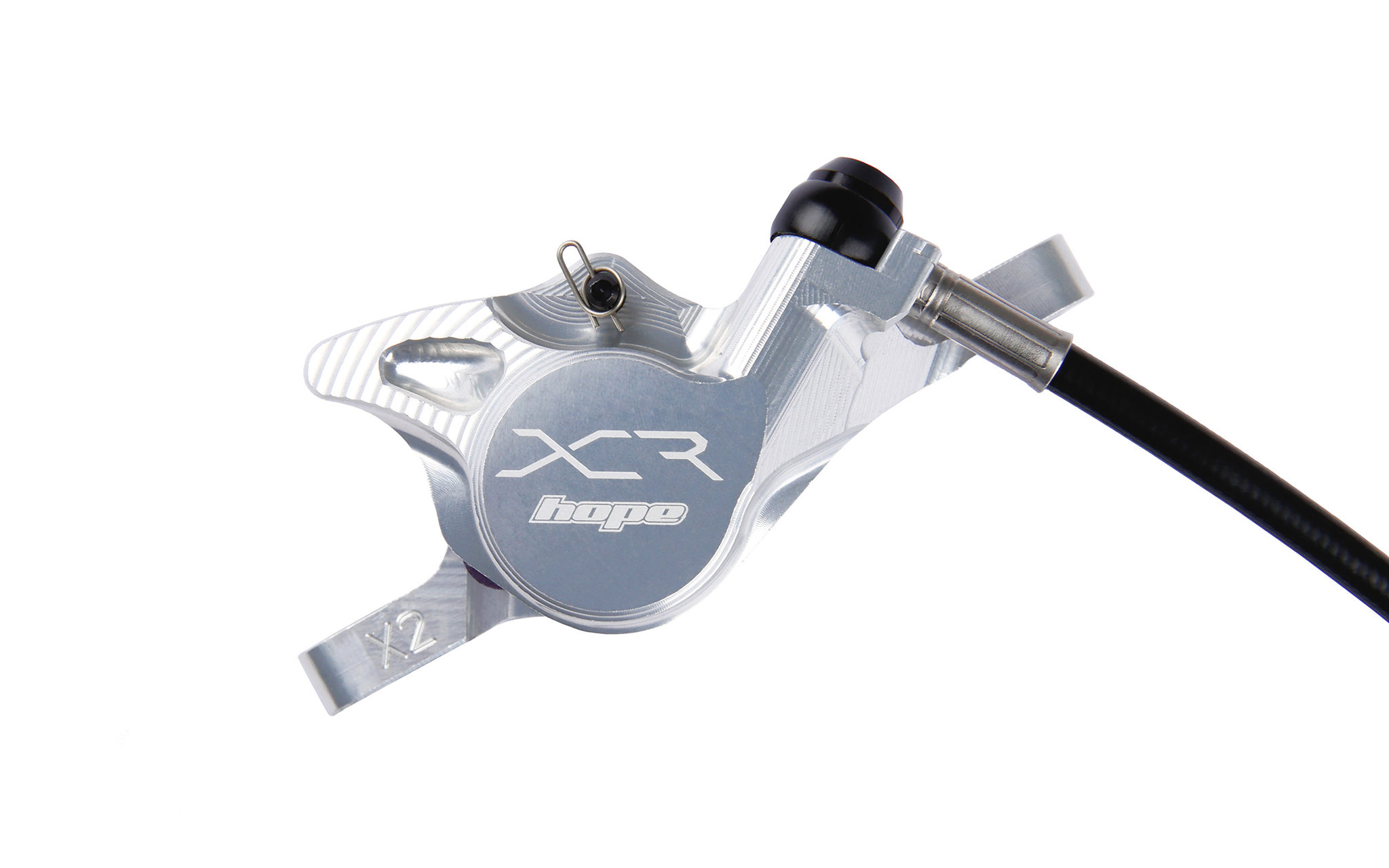 La construction est inédite pour un frein Hope puisque les XCR disposent d’un maître-cylindre radial (perpendiculaire au cintre), alors qu’il est axial (parallèle au cintre) sur les autres modèles de la marque. Il conserve toutefois un réservoir conventionnel, ce qui lui permet de fonctionner avec le même processus de purge que les Tech3.