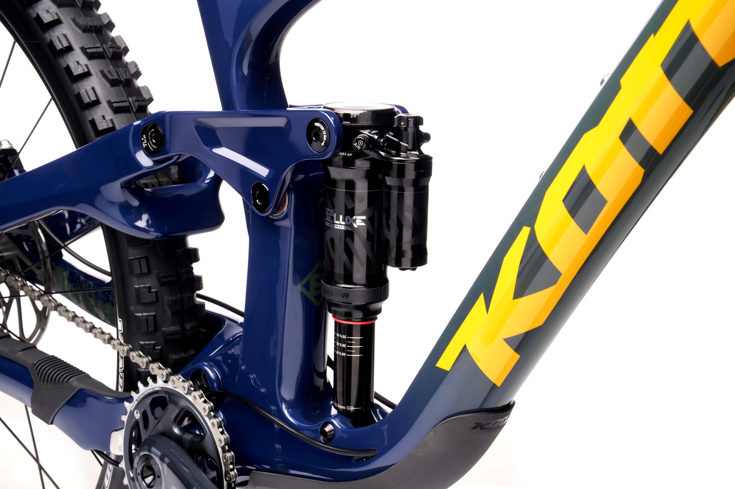 La suspension arrière, d’architecture monopivot avec basculeur (voir notre lexique des cinématiques) comme tous les Kona Process, développe donc 162 mm de débattement. Elle est associée à l’avant à une fourche en 170 mm de débattement.