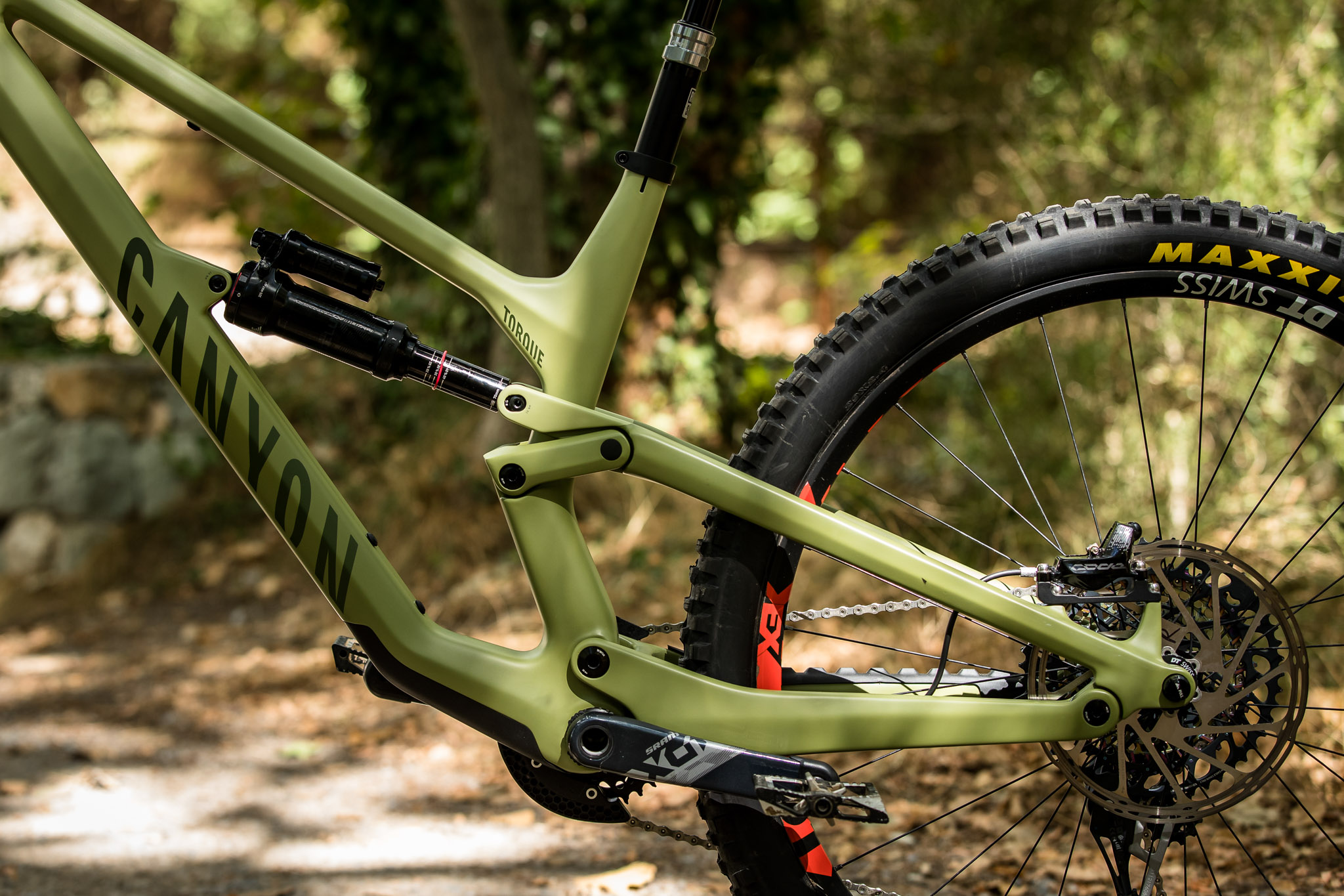 Les lignes générales du vélo et son architecture de suspension (4 bar linkage) changent peu mais toute la cinématique est revue. L’anti-squat est nettement plus haut sur la première partie de course (légèrement supérieur à 100 % au sag) pour plus de soutien au pédalage puis descend plus bas après, afin de mieux libérer la suspension (entre 50 et 60 % en fond de débattement avec la chaîne en milieu de cassette).