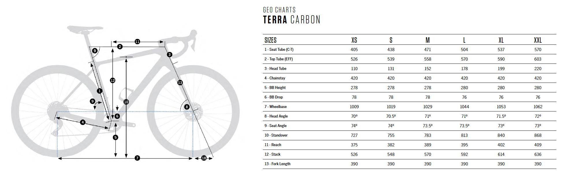 Ainsi en est-il de la géométrie, qui évolue en s’inspirant du VTT mais sans aller très loin dans les cotes. Le reach s’allonge de quelques millimètres (+ 5 mm en XS, + 9 mm en XXL) et le boîtier de pédalier descend d’environ 1 cm, mais dans le même temps, les bases se raccourcissent (de 430 à 420 mm). L’angle de direction, qui était auparavant fixé à 70,5°, varie désormais selon la taille et va de 70,5° en XS à 72° en XL.