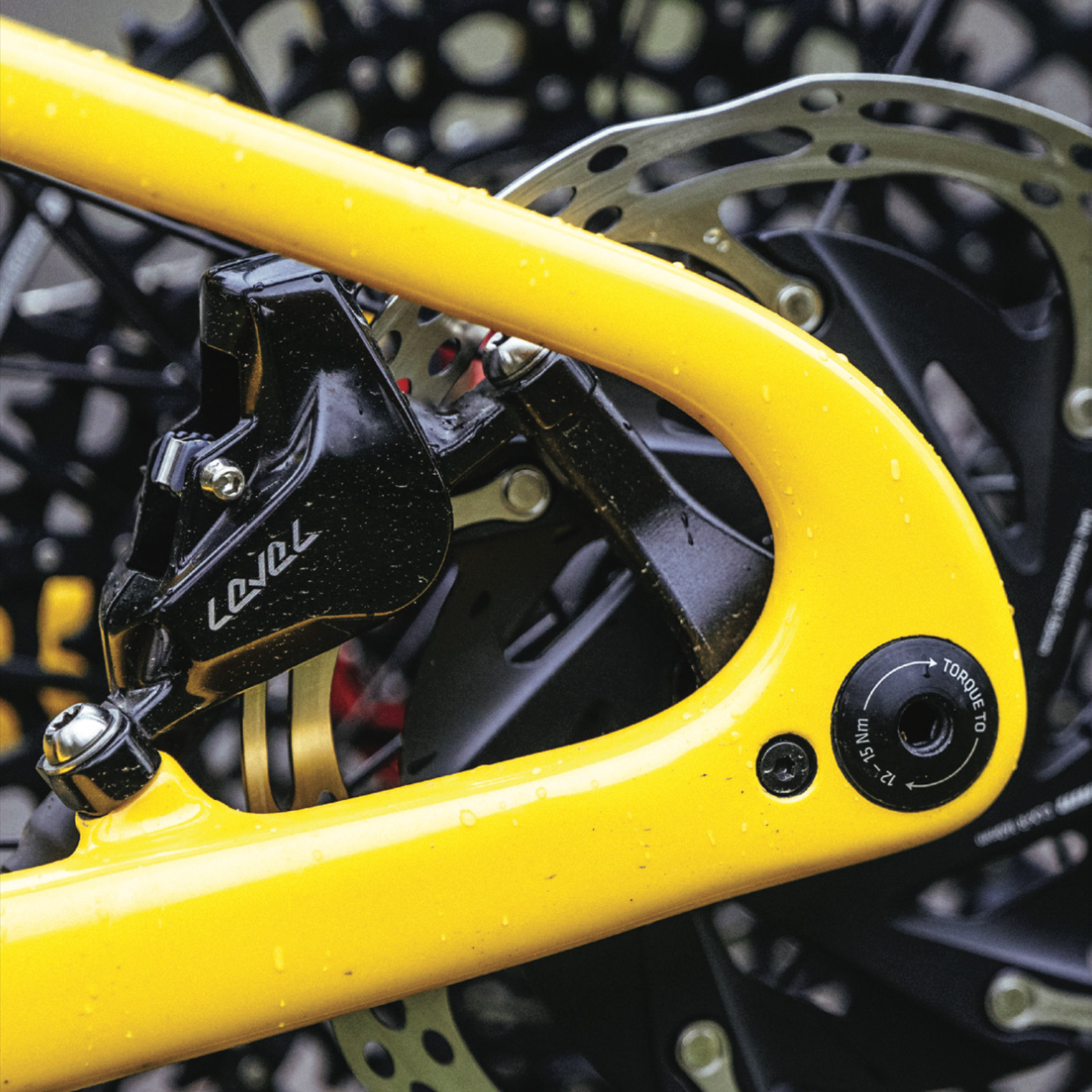 Cervélo explique aussi avoir « développé un support de frein flottant afin d’égaliser la flexion des haubans de chaque côté du bras oscillant et d’obtenir un meilleur comportement de la suspension ».