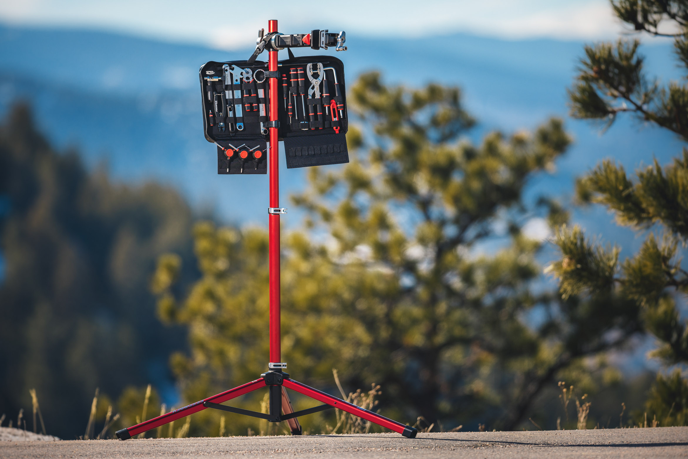 La marque américaine offre ainsi la possibilité à qui veut d’avoir le même matériel que les mécaniciens des teams de coupe du monde en proposant ce pied d’atelier Pro Mechanic à la vente.
