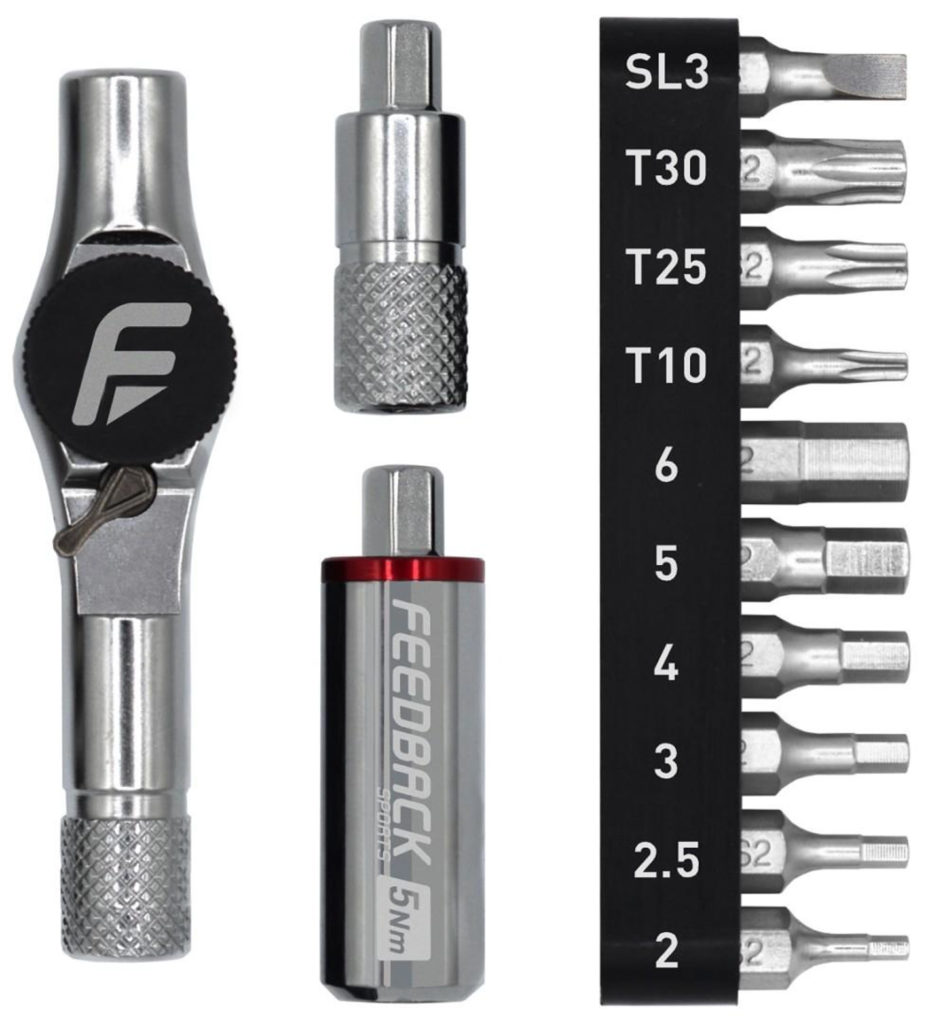 Feedback Sports clôt cette ronde des nouveautés par une petite clé à cliquets, bien pratique et facile à emporter dans n’importe quels poche de maillot, sac ou banane VTT. En plus du ratchet, ce kit comprend 10 embouts, une douille de rallonge de 25 mm et une douille de rallonge à cliquet de 5 Nm. Commercialisé au tarif de 85€, ce kit est attendu pour la mi-mai.