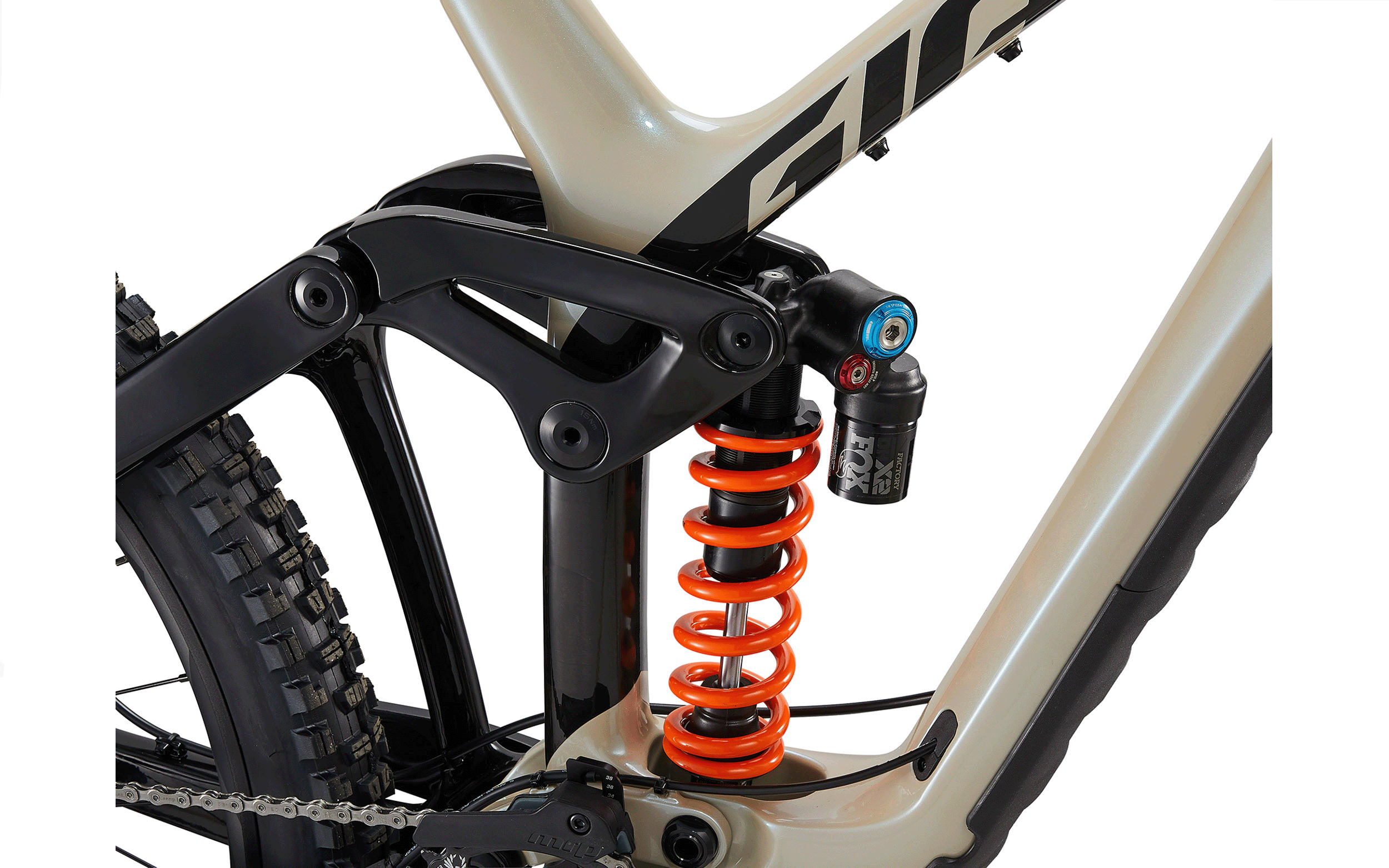 Le Glory bénéficie évidemment de la cinématique de suspension Maestro, propre à la marque, mais celle-ci a été « revue et ajustée afin d’offrir davantage de confort, de traction et de contrôle » selon Giant. Quatre points de pivots, une biellette et un basculeur sont au cœur de ce point de pivot virtuel (pour réviser, le lexique est juste ici). La marque américaine a opté pour un amortisseur Fox DHX2, développant 200 mm de débattement et spécialement adapté à la cinématique du Glory par Fox.