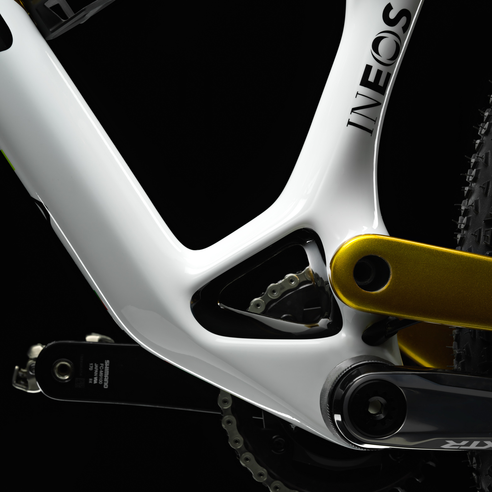 Le développement de ce Pinarello Dogma XC a débuté lors de l’automne 2022 avec l’étude des données issues de deux années précédentes de compétitions de Tom Pidcock, ainsi que des points que le pilote britannique jugeait nécessaires afin de concevoir un vélo capable de gagner sur la scène internationale. Le résultat en est un tout-suspendu au cadre en carbone et aux roues de 29″, à l’allure plutôt traditionnelle. Pourtant, ce Dogma XC présente quelques détails intéressants.