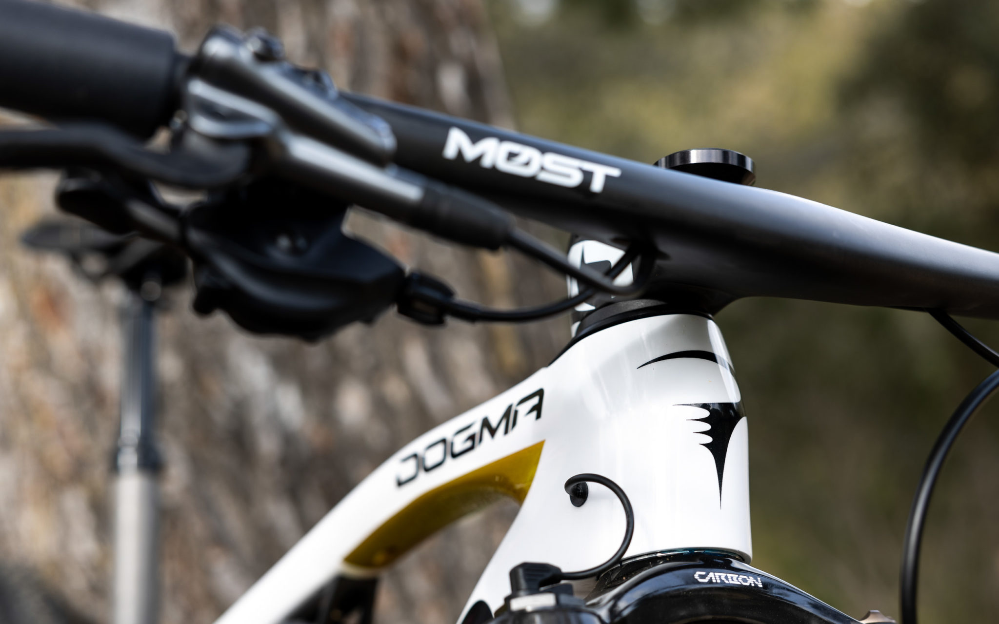 Le cadre de ce Dogma XC permet le choix entre deux configurations de suspensions, à savoir un débattement avant/arrière de respectivement 100 et 90 mm (avec un amortisseur en 190×45 mm) ou un débattement avant/arrière de 120 et 100 mm (avec, dans ce cas, un amortisseur en 210×50 mm).