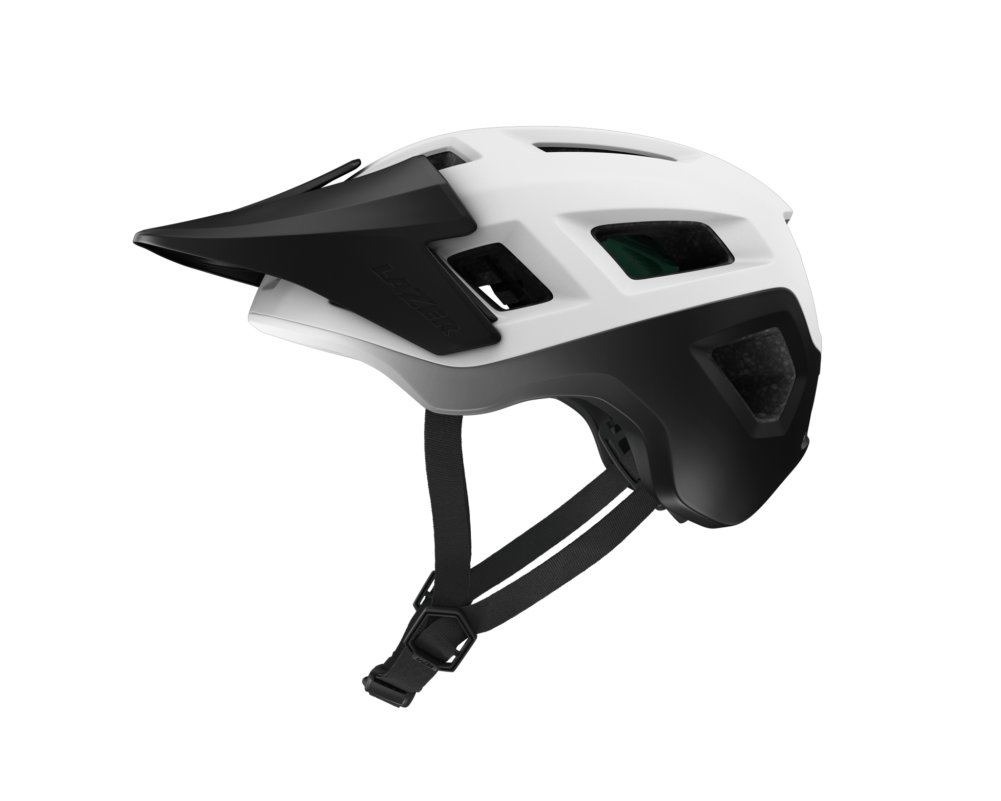 Comme pour le Jackal (lire : Test Ride #27 | Casque Lazer, short JeansTrack et pied UpStand), la visière s’intègre parfaitement dans les lignes du casque pour un rendu visuel plutôt réussi. Cette visière est réglable sur 3 positions, et permet en position haute d’offrir assez d’espace pour positionner un masque selon Lazer. La marque belge explique également avoir veillé au confort lorsque le casque est porté avec des lunettes.