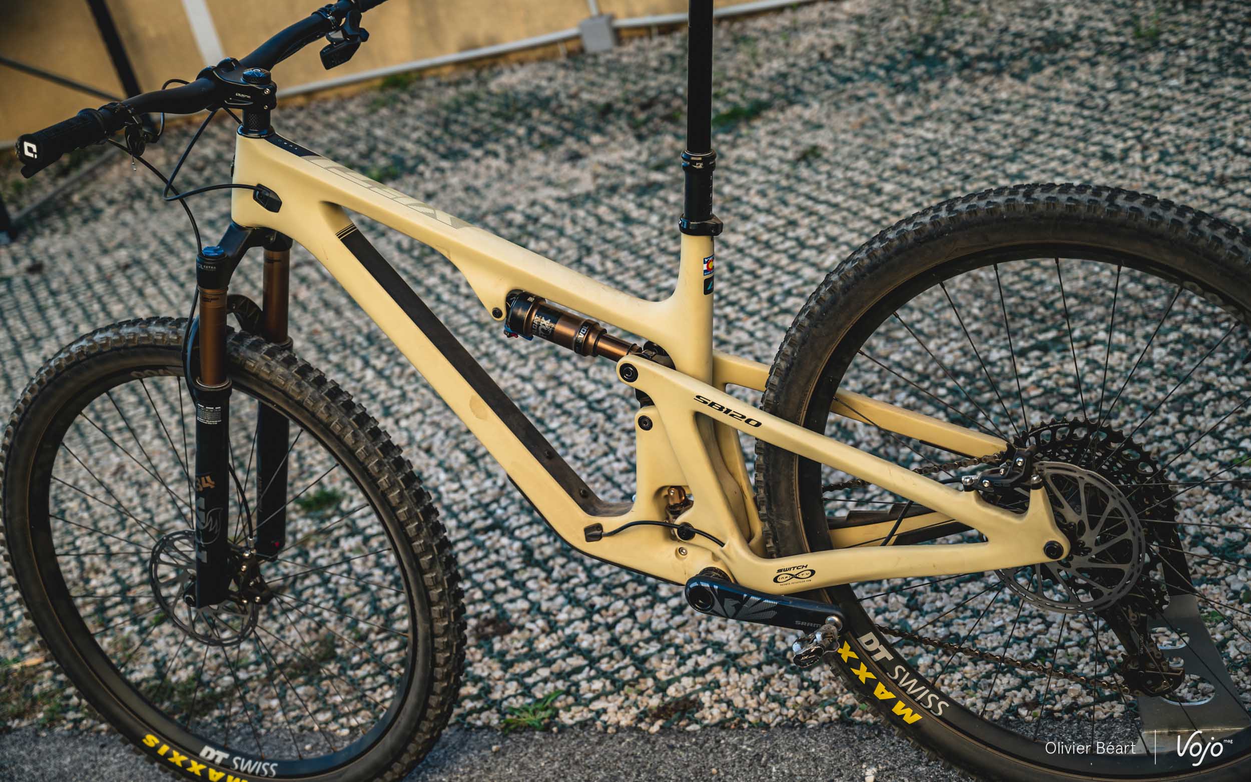 La suspension a été retouchée pour offrir désormais 120 mm de débattement avec un amortisseur Fox Float DPS. Du temps du SB100, on pouvait prendre ce type de vélo pour un XC, mais désormais les choses sont plus claires : c’est un vélo de trail à petit débattement. Il pédale bien, oui, mais il ne vise pas les performances sur des courses en circuit court ou sur des terrains roulants.