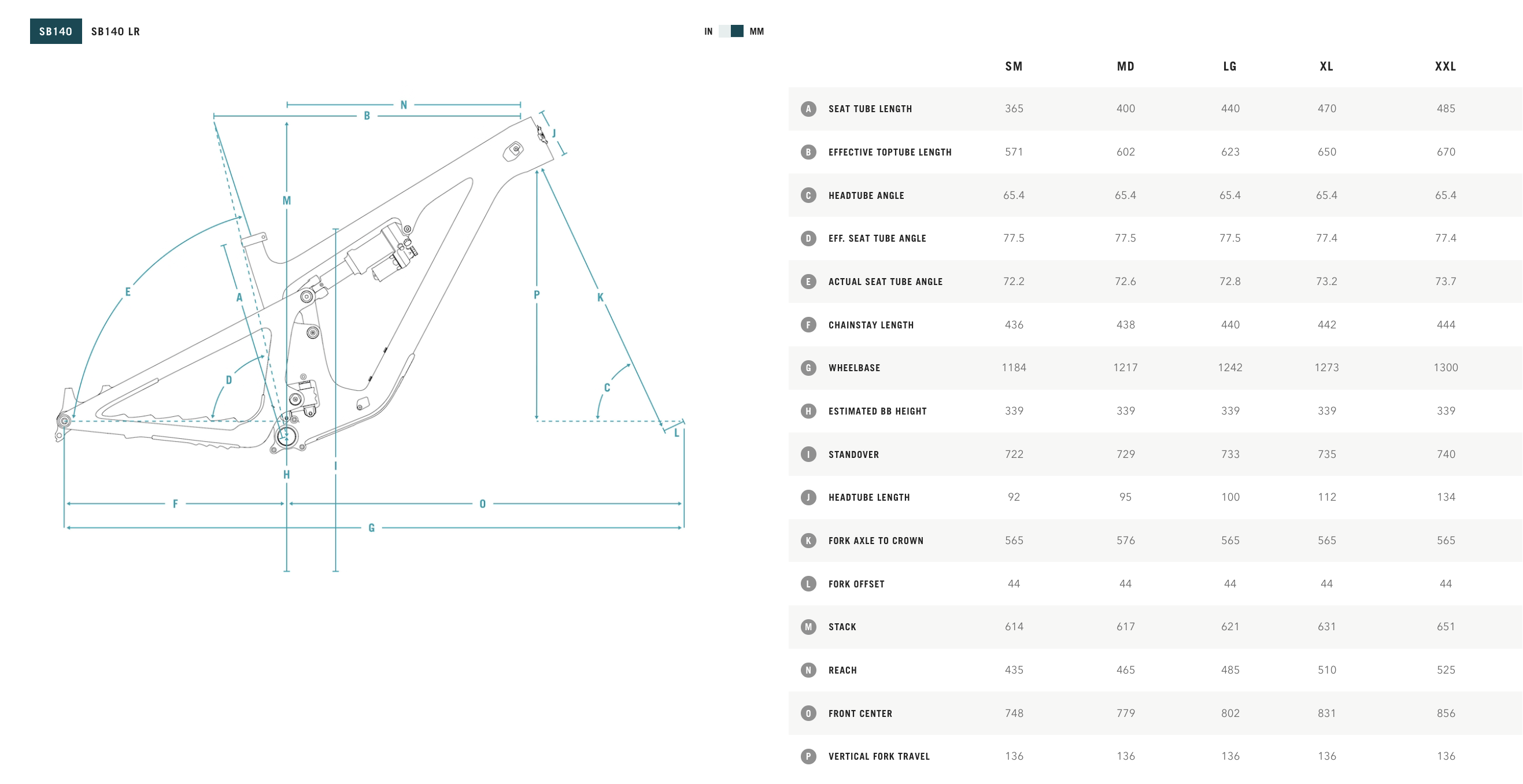 Côté géométrie, comme sur le SB160, elle évolue selon la taille notamment au niveau de la longueur et de la hauteur, mais aussi du côté des bases et de l’angle de tube de selle pour offrir exactement les mêmes sensations à tous les pilotes quelles que soient leurs mensurations. Au niveau des chiffres, on note que l’angle de direction est de 65,4° avec fourche de 150 mm et 65° sur la version Lunch Ride en 160 mm (contre 64° pour le SB160), que l’angle de selle est de 77°, alors que le reach va de 435 à 525 mm au fil des 5 tailles au programme (du SM au XXL) ; soit des valeurs identiques au SB160 pour cette dernière mesure.