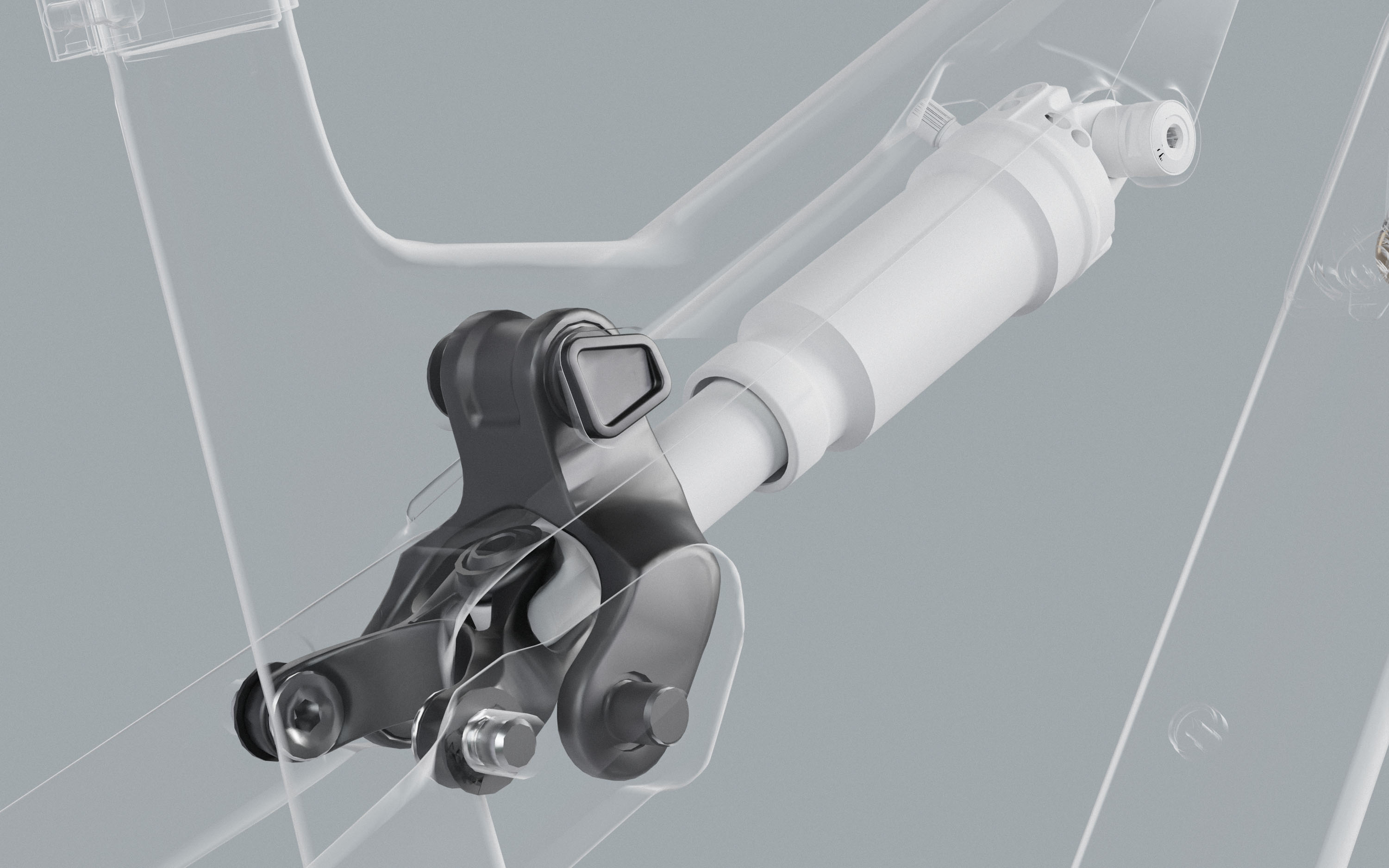Pour parvenir à rapprocher l’amortisseur le plus proche du tube supérieur, et donc à intégrer deux porte-bidons, Canyon a dû se creuser la tête. Le résultat le voici : « Une cinématique mono-pivot similaire au Lux World Cup, mais sur laquelle nous avons ajouté un basculeur qui améliore la sensibilité sur les petits chocs » explique la marque. « C’est la clé de la cinématique du Lux Trail et il ressemble à un vélo avec beaucoup plus de débattement à l’arrière » continue-elle.