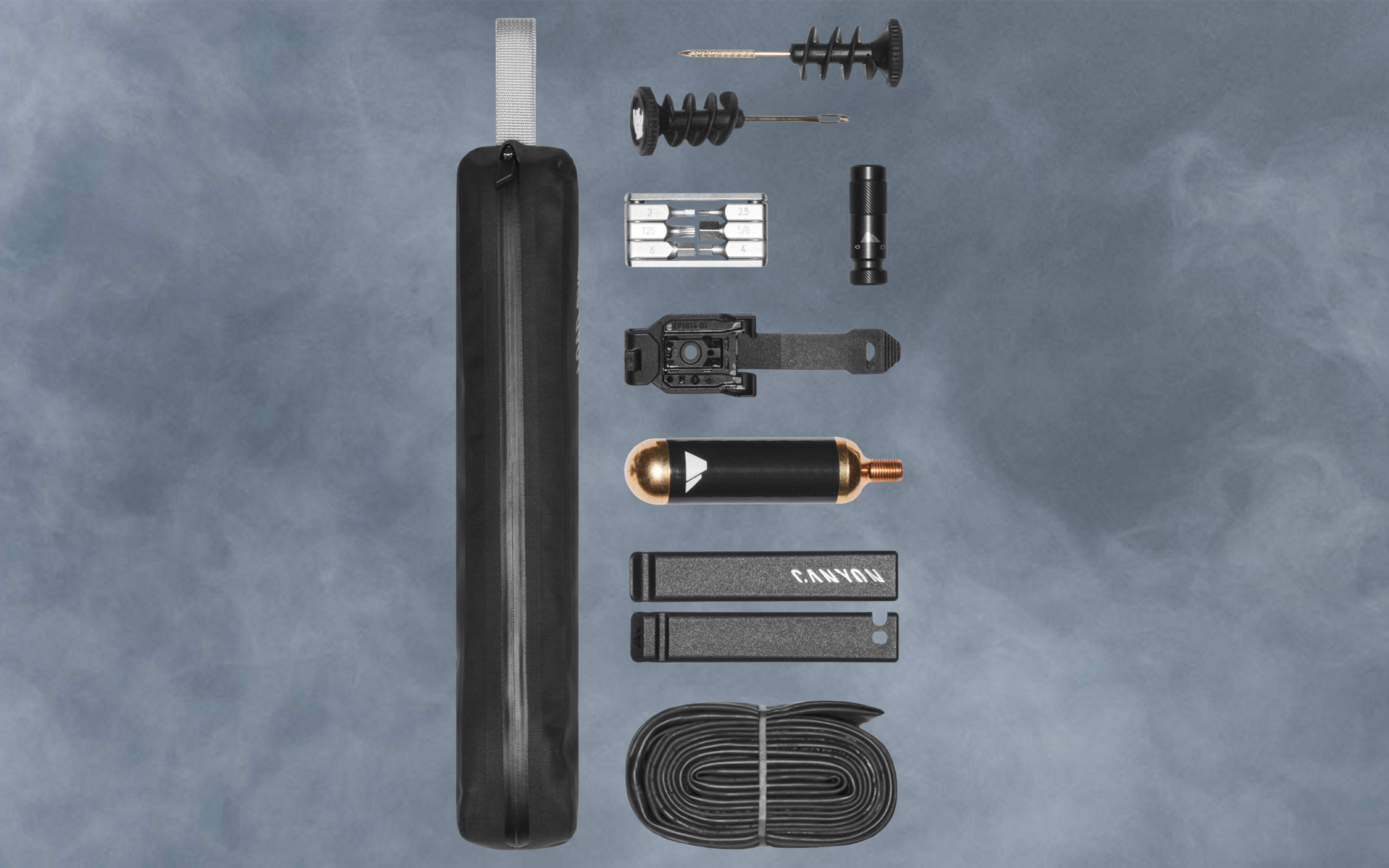 Au-delà du passage du débattement arrière de 110 mm à 115 mm, le cadre emporte diverses évolutions telles que cet ingénieux espace de stockage divisé en 3 espaces : un kit de mèches pour tubeless Sahmurai Sword se trouve au niveau des embouts de cintre, un multi-outils est positionné juste en dessous du tube supérieur tandis que le tube diagonal contient une sacoche de réparation (cartouche de CO2, chambre à air de secours, démonte-pneus-). Cette sacoche, dénommée LOAD, ainsi que l’ensemble de son contenant est disponible en option pour un peu moins de 60€ (chacun des éléments pouvant être acheté séparément).