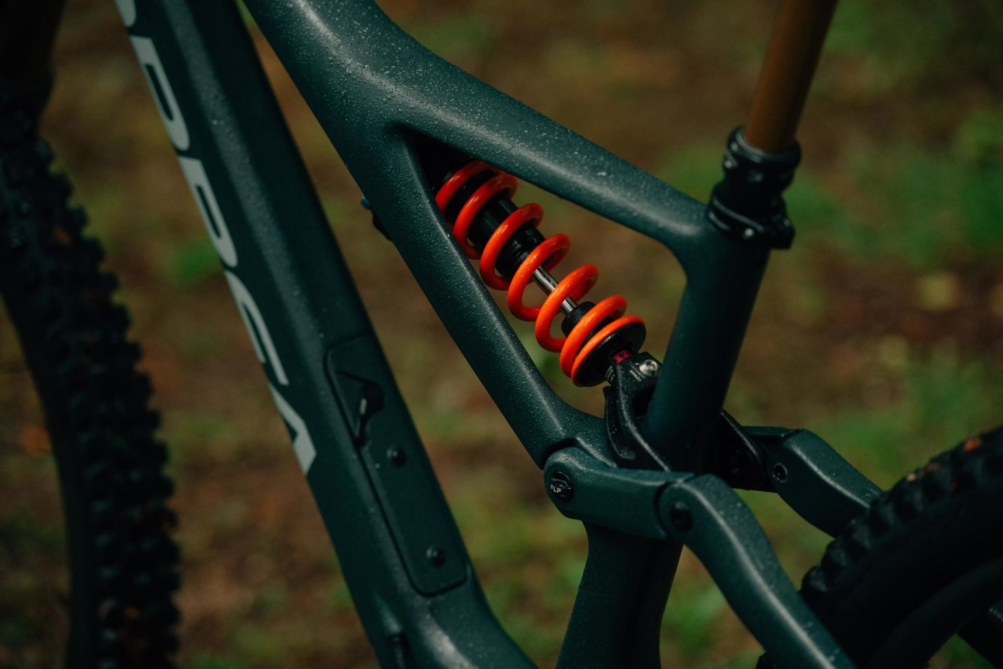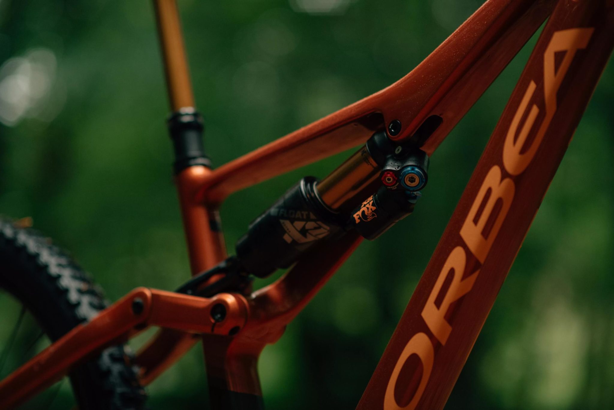 Pour le débattement, c’est à l’arrière que ça se passe : grâce à l’utilisation d’une course d’amortisseur de 62,5 mm plutôt que 60 mm comme avant, le débattement gagne 7 mm et passe à 167 mm. Orbea explique en outre avoir profité du nouveau triangle avant pour modifier légèrement la position du point de pivot principal afin de donner une trajectoire d’axe de roue qui recule un peu plus sur les impacts, notamment en début de débattement. Cela n’affecte pas les autres caractéristiques de la suspension comme l’anti-rise ou l’anti-squat, qui restent similaires sinon identiques à celles du Rallon 2022/2023.
