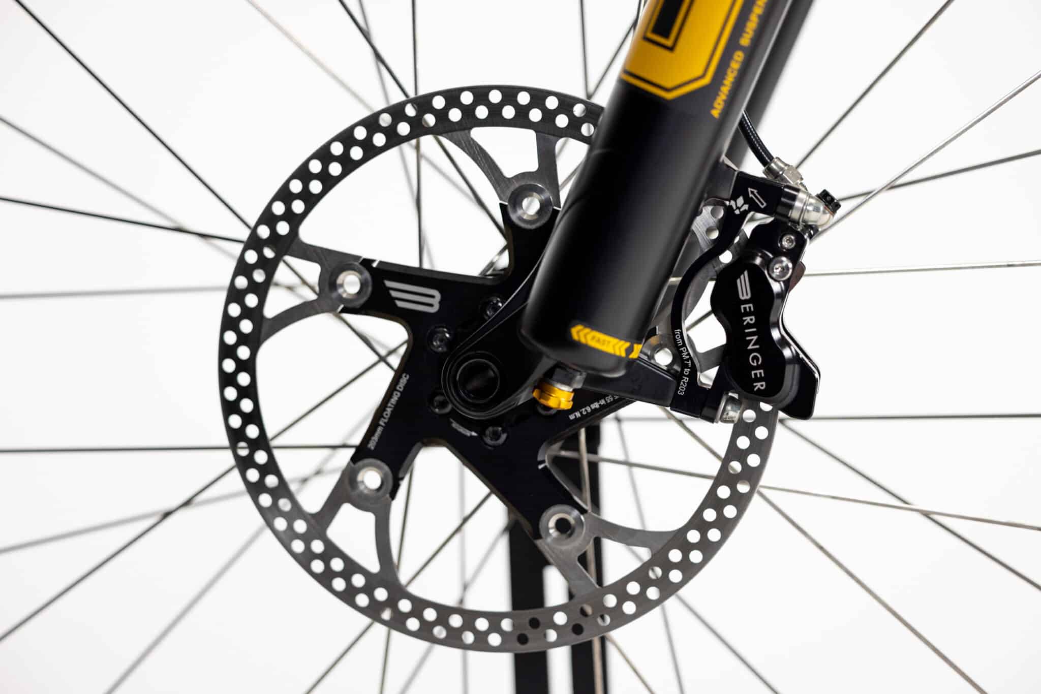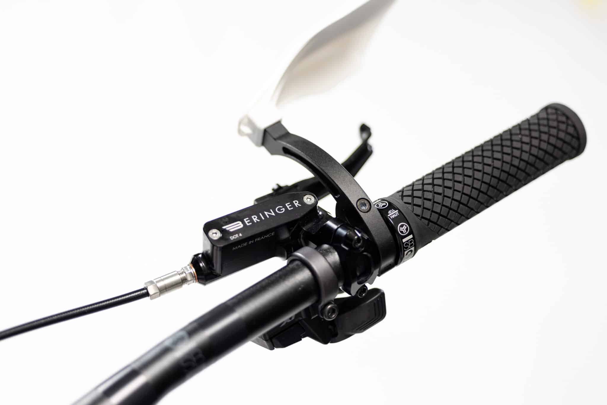Retour en 2024. Il y a quelques semaines, Beringer a agité le milieu francophone en dévoilant ses freins Br4ve, un modèle tourné vers l’enduro et la DH avec un positionnement très haut de gamme : comptez 999 € pour le modèle de série (2 coloris au choix) ou 1199 € pour la finition personnalisable. On espère qu’on aura l’occasion de vous en reparler plus tard dans l’année mais ce qui nous intéresse aujourd’hui, c’est un vélo complet.