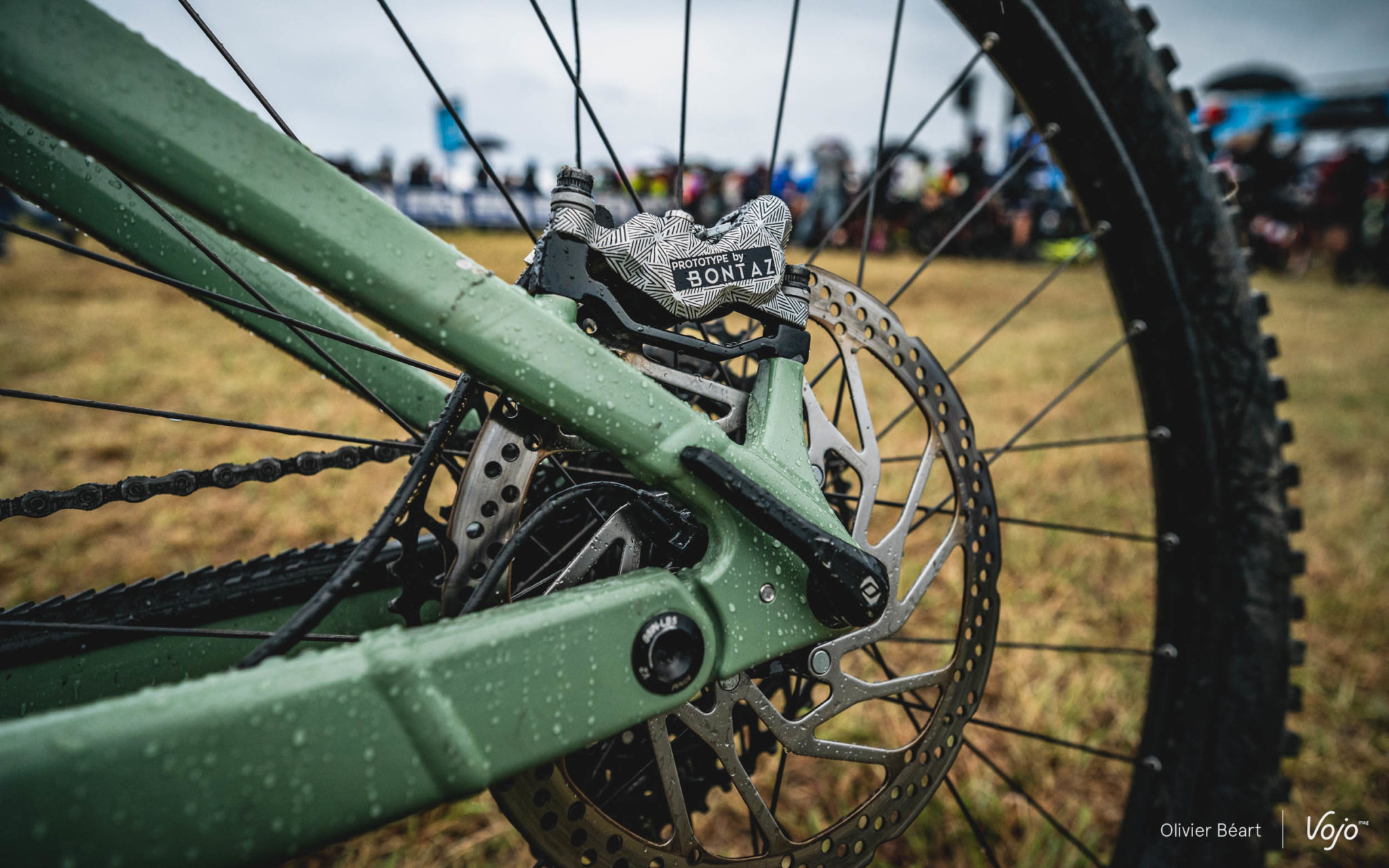 Les pièces que vous pouvez voir sur nos photos sont parmi les premiers prototypes roulables et comme vous l’aurez peut-être déjà compris, nous avons pu les éprouver sur le Roc d’Azur ! Eprouver, c’est bien le mot car celles et ceux qui étaient présents ce dimanche là à Fréjus comprendront bien qu’on fait difficilement pires conditions pour un frein… De la pluie et des projections d’eau sablonneuse en continu du début à la fin du parcours, voilà ce qui était au menu.