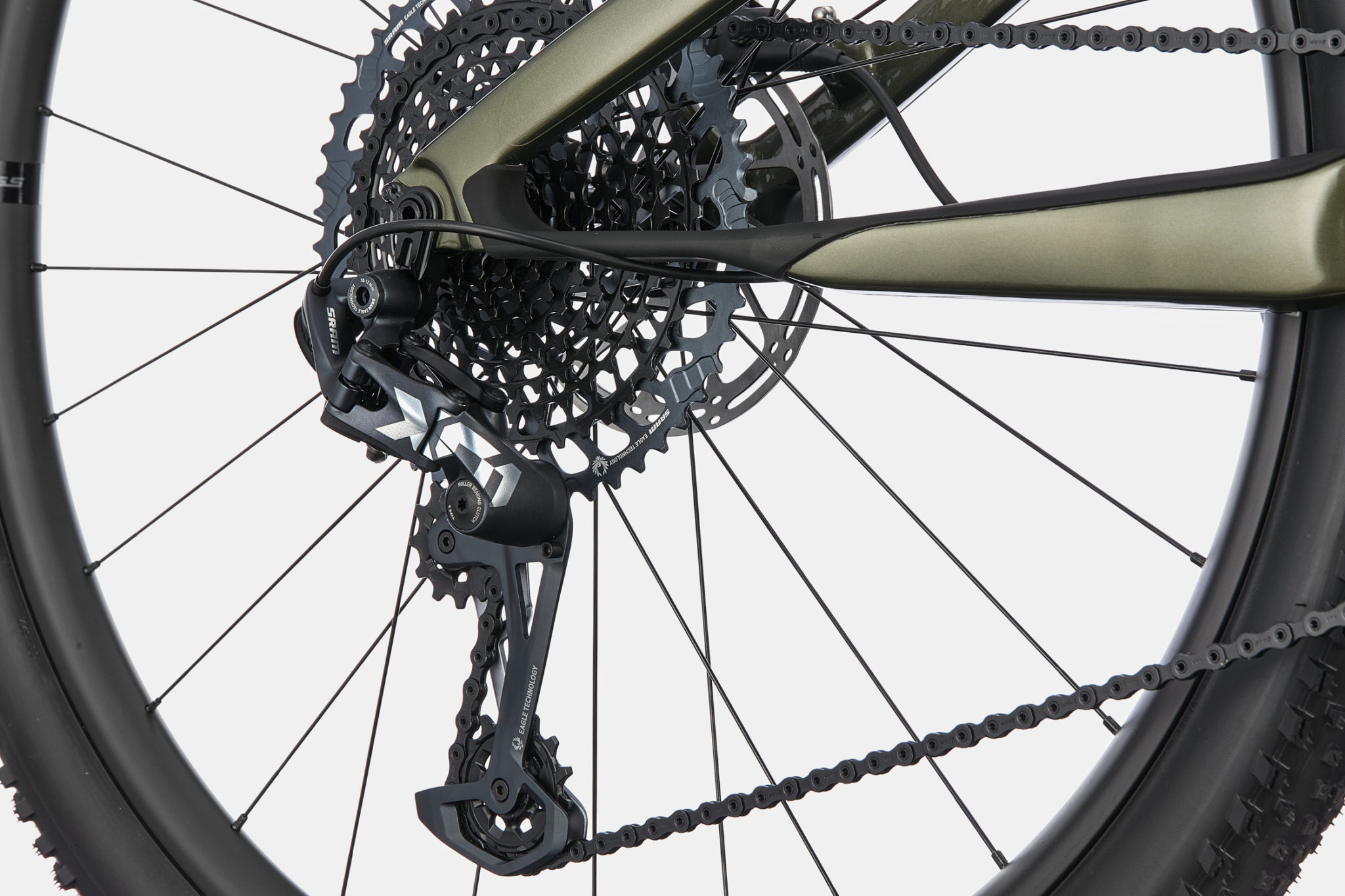 L’équipement est haut de gamme mais (presque) sans surprises, avec un amortisseur RockShox Sid Luxe Ultimate, une transmission Sram X01 Eagle, des freins Sram Level TLM, une tige de selle télescopique Cannondale DownLow et des roues Cannondale HollowGram 25 en carbone, chaussées de pneus Maxxis Ardent Race (AV) et Rekon Race (AR).