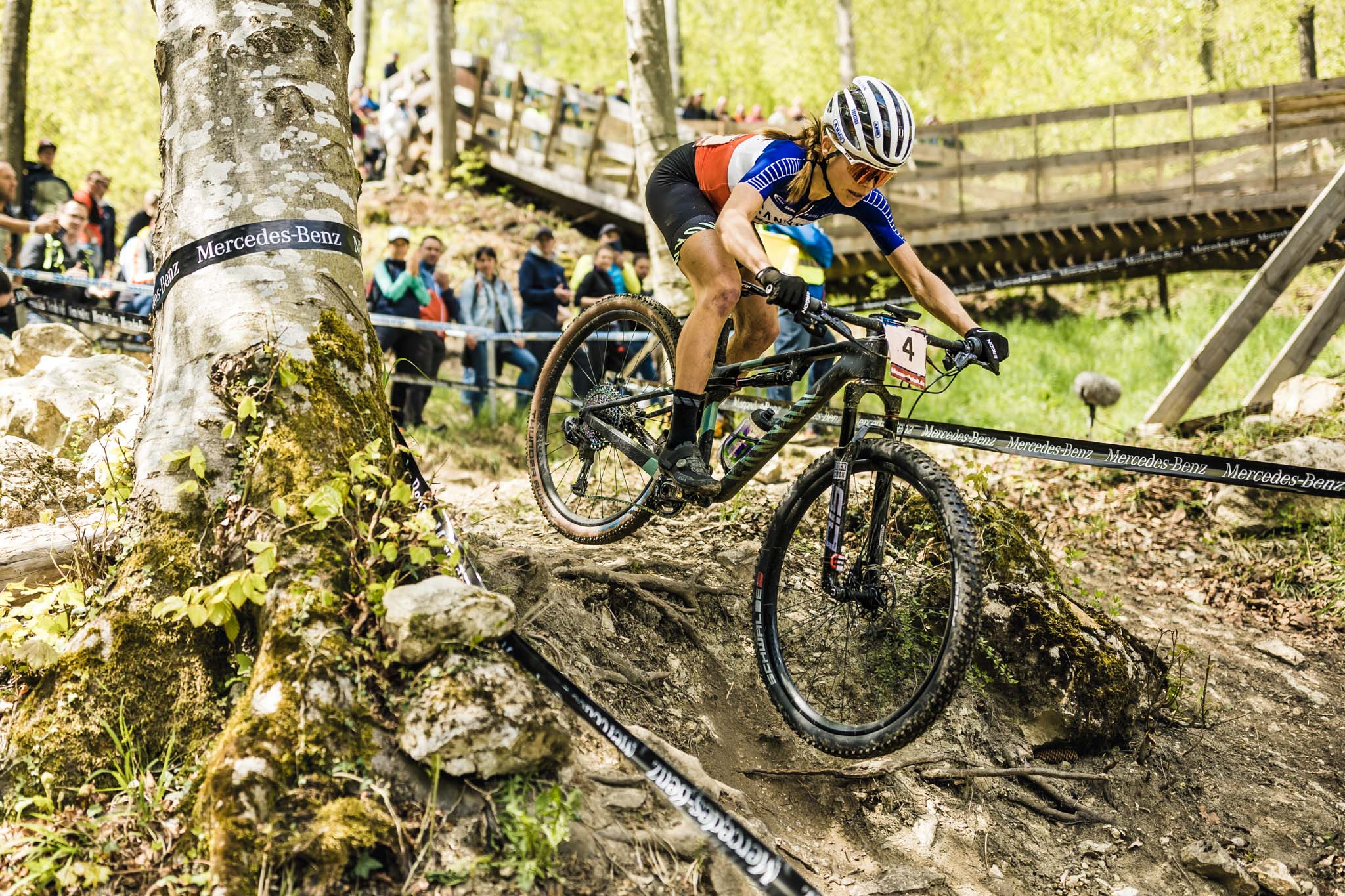 Sur ce nouveau Lux WC, Canyon s’est donc attaché à corriger le tir, en plus d’améliorer le poids de sa machine et de revoir légèrement le comportement de sa suspension. Roulé en coupe du monde depuis le début de la saison par des équipes comme Canyon Cllctv XCO, Canyon MTB Racing ou Alpecin-Fenix, ce nouveau modèle a en tout cas déjà démontré son efficacité puisque Loana Lecomte vient d’enchaîner 4 podiums en coupe du monde à son guidon, avec une victoire en point d’orgue il y a quelques jours à Leogang.