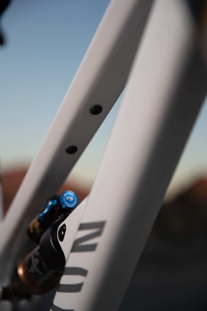 Enfin, le Spectral 125 reprend aussi toutes les astuces de construction qui participent au succès du Spectral : passages internes entièrement guidés sur les modèles en carbone (dans des tubes en mousses pour les modèles en aluminium), inserts remplaçables dans le cadre pour les vis de suspension, toutes les points de pivots accessibles par le côté opposé à la transmission…