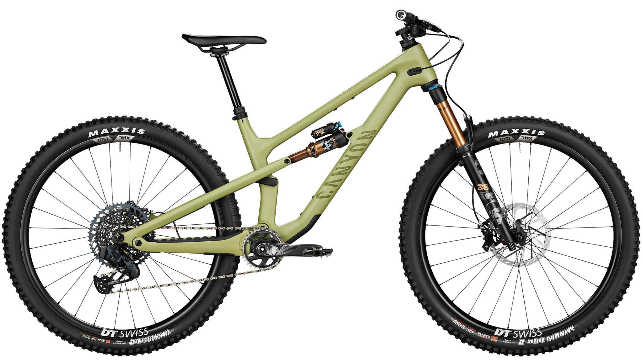On a vu plus léger sur le même segment mais Canyon n’a pas fait dans la demi-mesure pour l’équipement : freins 4 pistons pour tout le monde (Shimano Deore/SLX/Deore XT ou Sram Code RS/Code RSC), disque de 200 ou 203 mm à l’avant et grosse fourche, avec une Fox 36 pour trois des cinq modèles. Voilà qui promet !